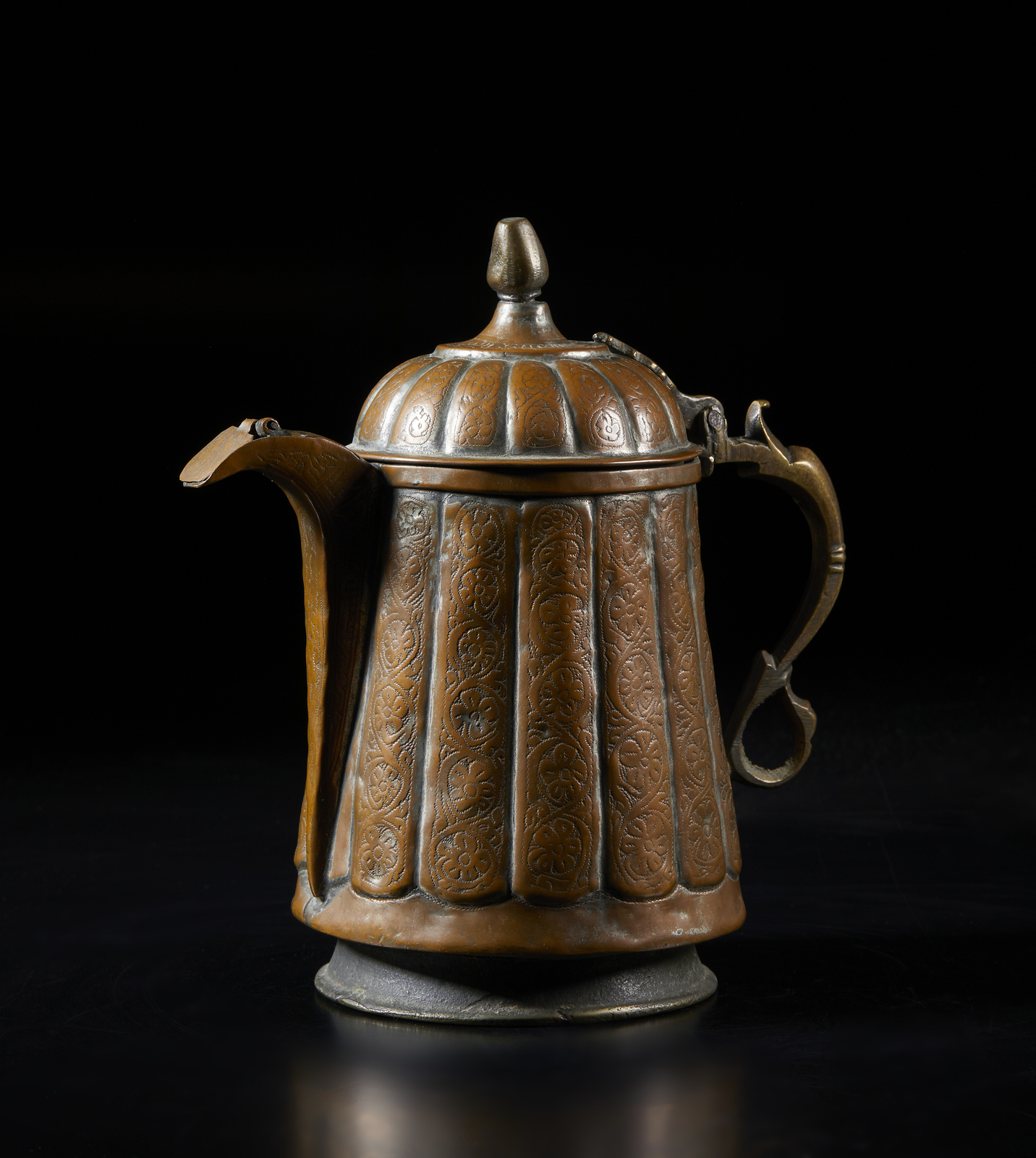 Arte Islamica - Grande caraffa in rame inciso Kashmir, XIX secolo .