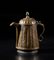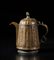 Kashmir, XIX secolo . . Cm 24,00 x 26,00. Poggiante su disco, il corpo costolonato a sbalzo, come il coperchio, incernierato su un lato e completo di manico in fusione sagomato a dragone con fauci aperte. Ogni rastrematura è cesellata con girali floreali.