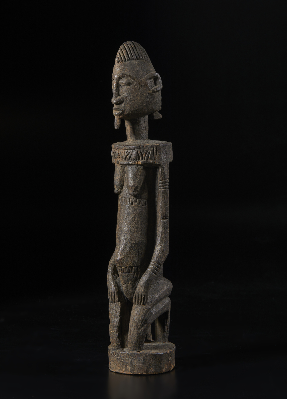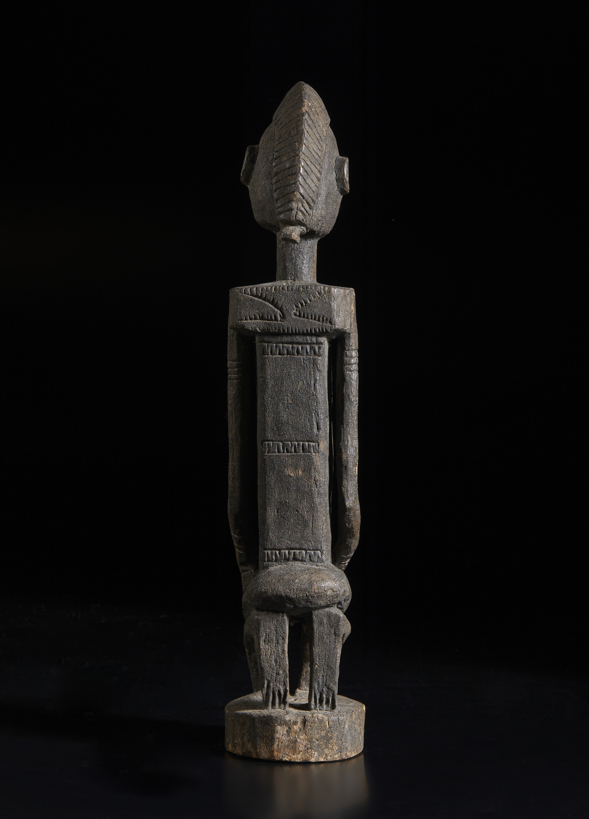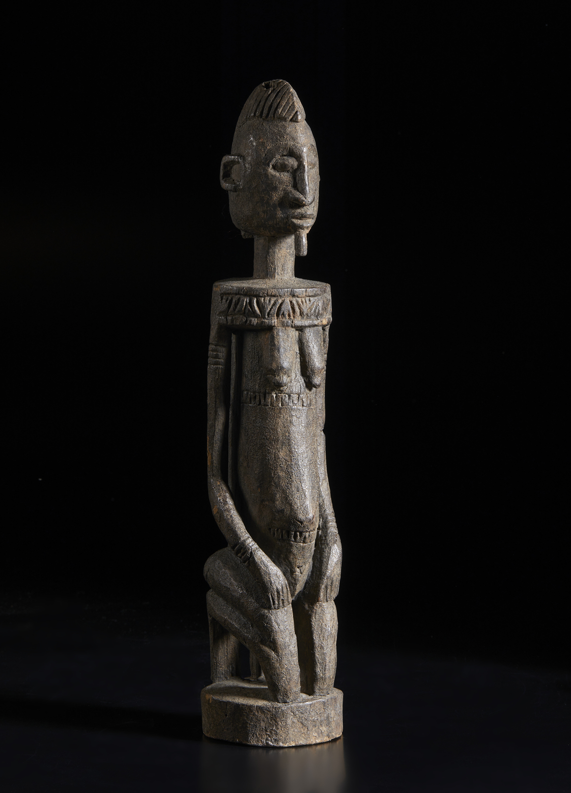Arte africana - Mali, Dogon Scultura antica di figura antropomorfa. Legno con patina crostosa sacrificale. Segni d'uso.