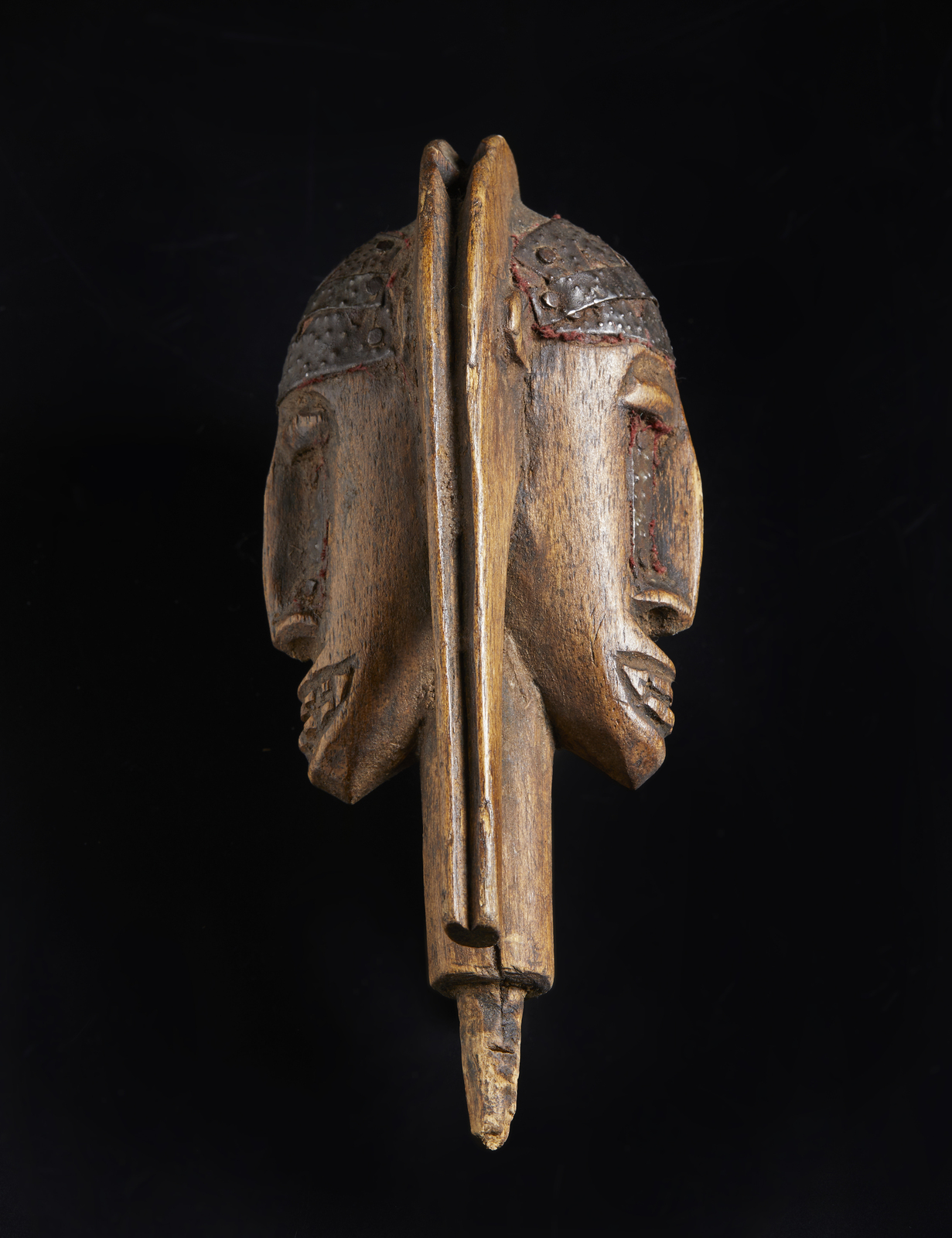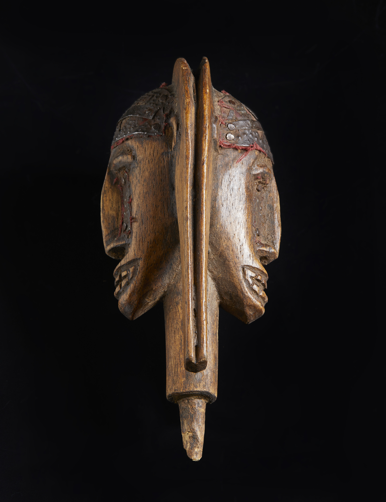 Arte africana - Mali, Marka. Testa di marionetta Merekum. Legno e metallo. .