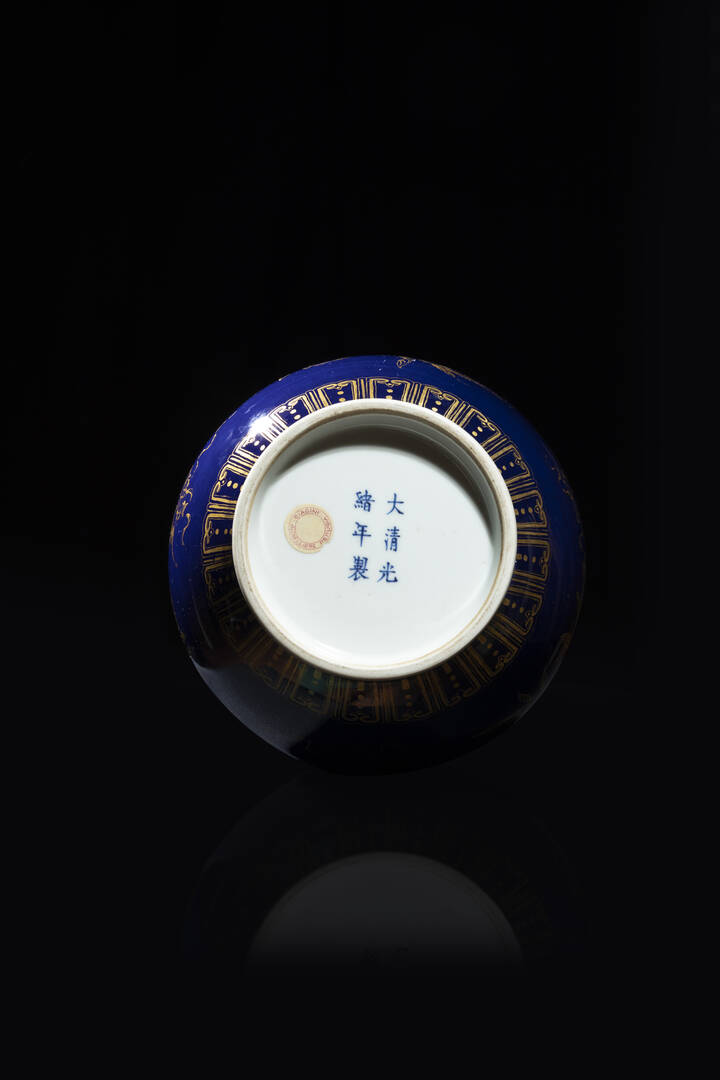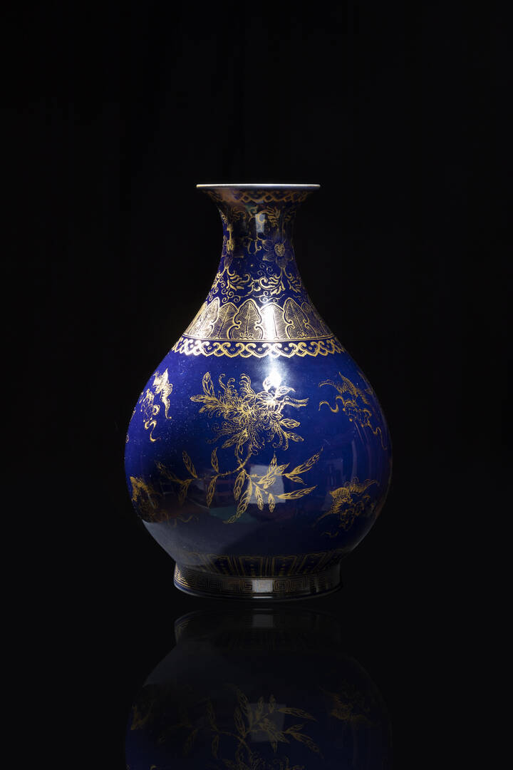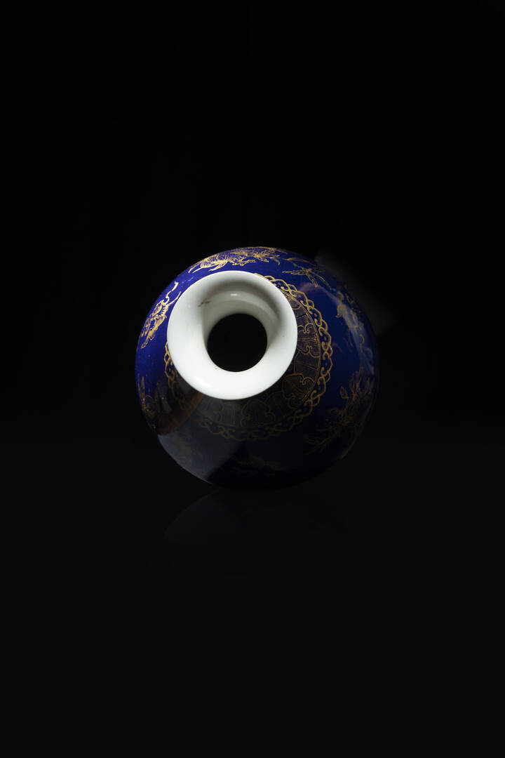 Vaso in porcellana blu cobalto con decori in oro, Cina, dinastia Qing, epoca Guangxu (1875-1908)