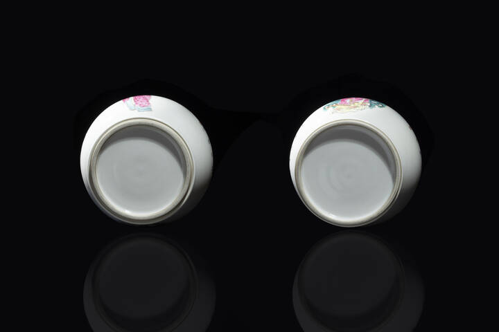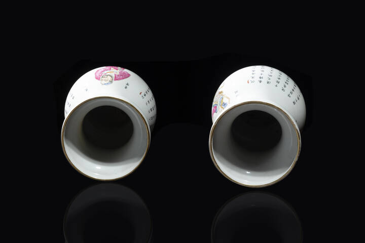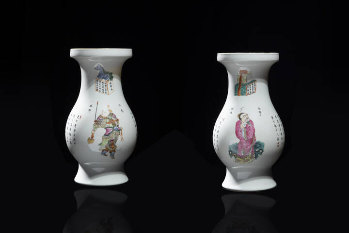Coppia di vasi in porcellana Famiglia Rosa con personaggi e iscrizioni, Cina, Repubblica, XX sec
