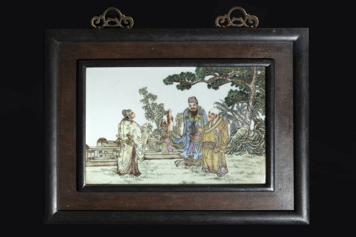 Placca in porcellana Famiglia Rosa rappresentante monaci, Cina, Repubblica, XX sec