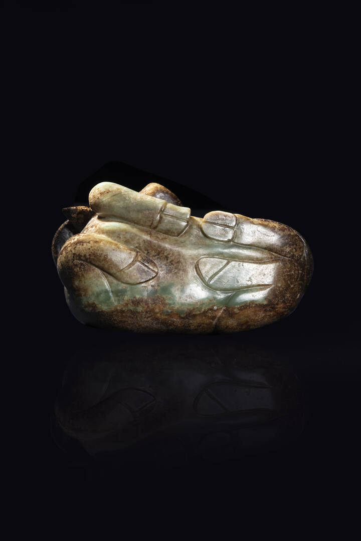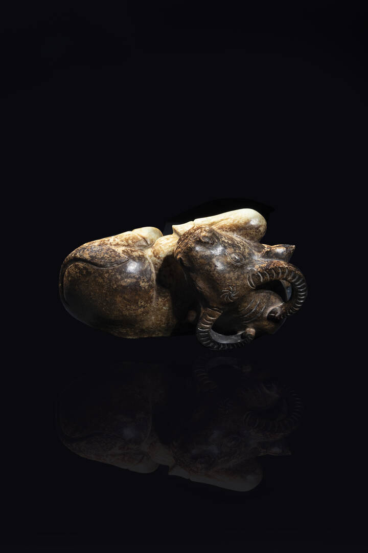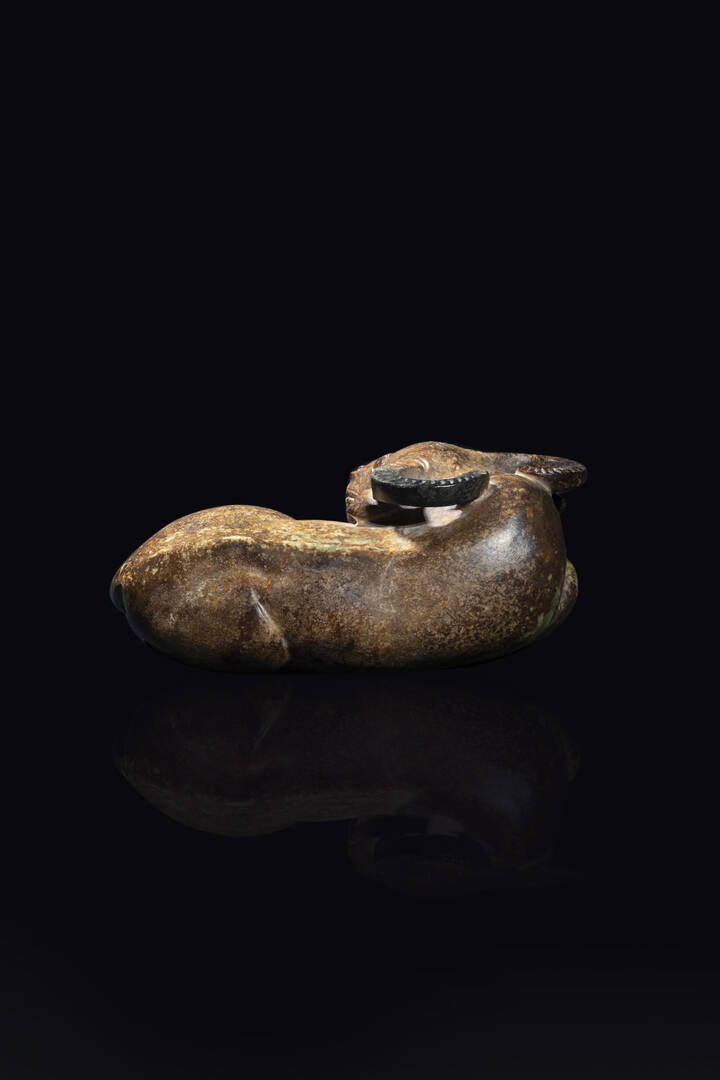 Rara figura di bufalo scolpita in giada e russet, Cina, dinastia Ming, XVI sec