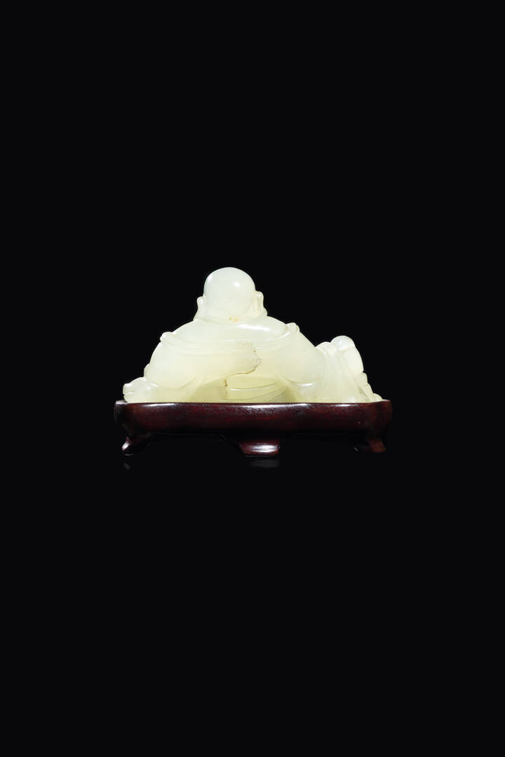 Buddha seduto in giadeite color cedalon, Cina, Repubblica, XX sec