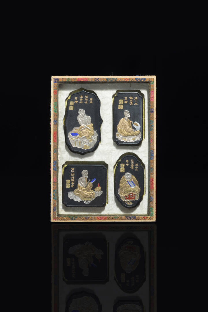 Quattro pietre da scrittura entro cornice, Cina, Repubblica, XX sec.
