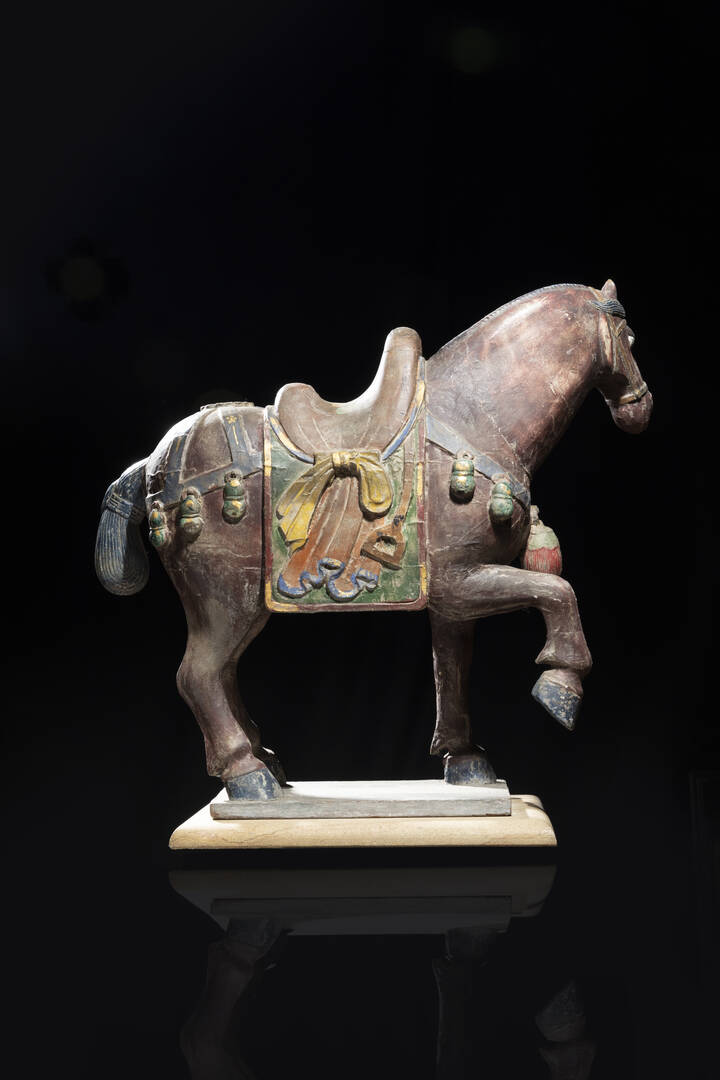 Cavallo in legno policromo in stile Tang, Cina, Repubblica, XX sec.