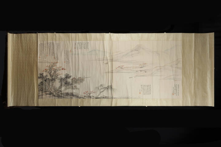 Dipinto su pergamena con paesaggi e iscrizioni, Cina, Repubblica, XX sec.