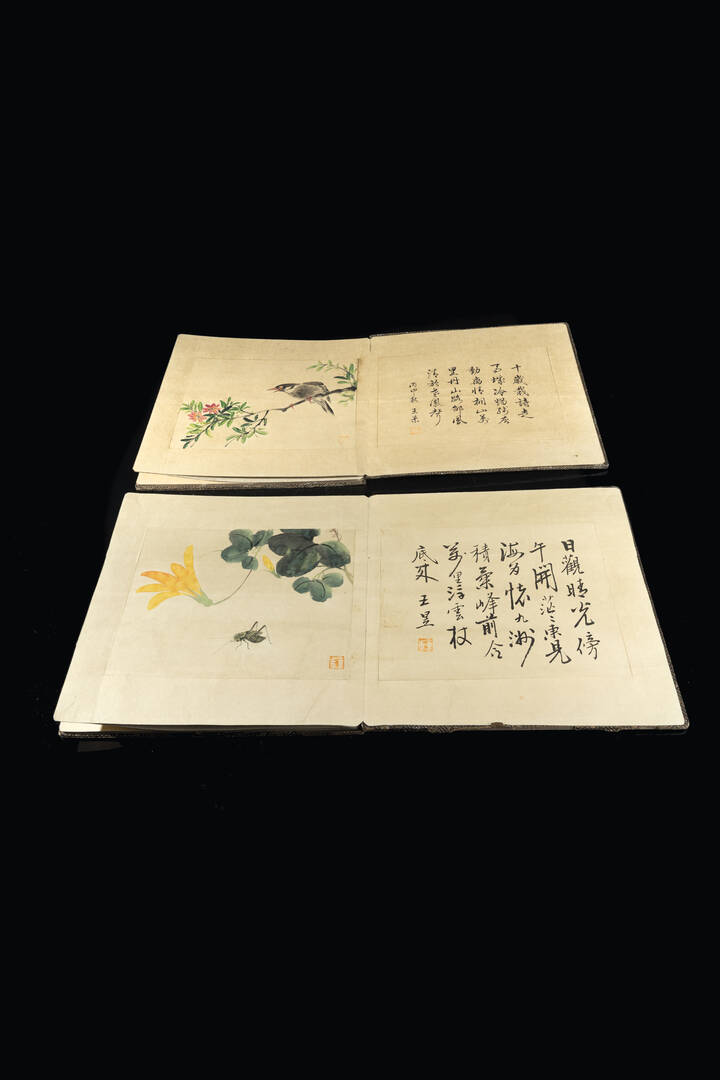 Coppia di album con disegni acquerellati di insetti e piante, Cina, dinastia Qing, XX secolo.