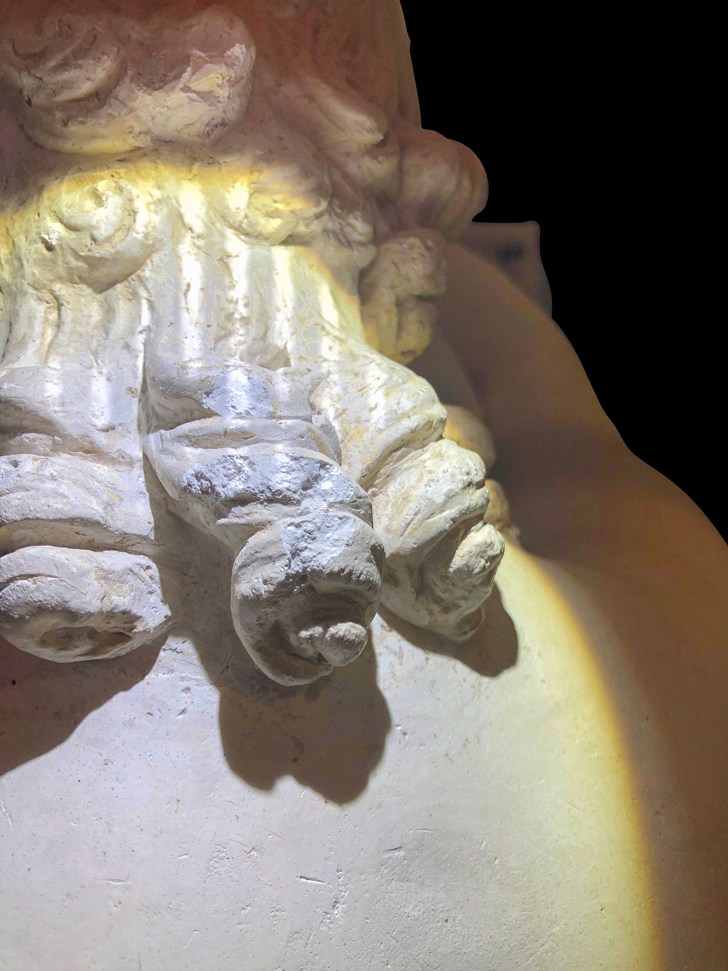 Nella prima sala della nostra visita virtuale allo studio di Canova con ogni probabilità vedremo proprio il gesso di Possagno. Mentre nella seconda, la parte più interna e riservata, incontreremo il gesso di Veneto Banca. Sono le differenze materiali tra le due opere a guidarci e ad illuminarci sulla loro importanza e ruolo.