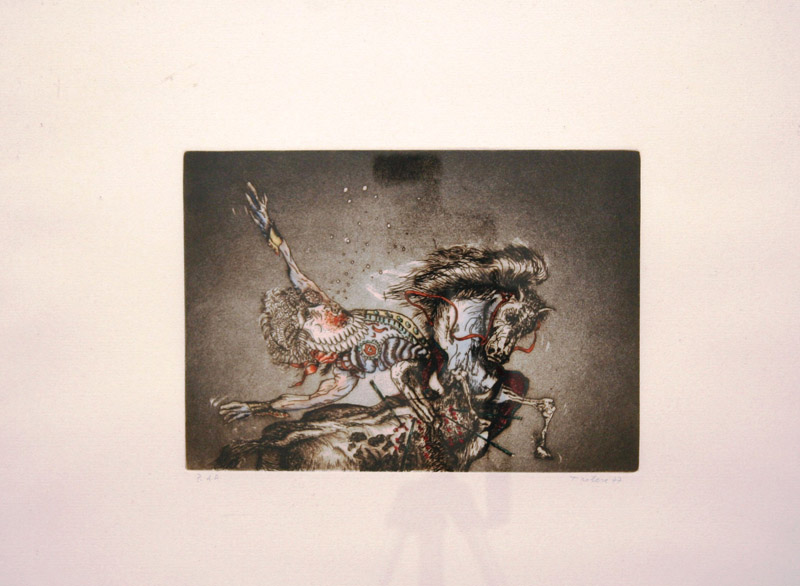 Benito Tirolese Toro, torero e cavallo, 1977 Acquaforte acquarellata 54 x 74