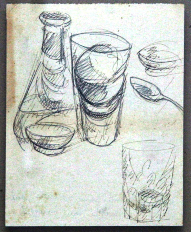 Lorenzo Viani Natura morta Disegno - autentica al retro della figlia Ornella Viani Vangelli 17 x 13