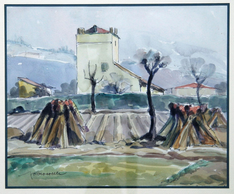Piero Coelli Casolari di campagna Tempera su cartone - in cornice 50 x 56