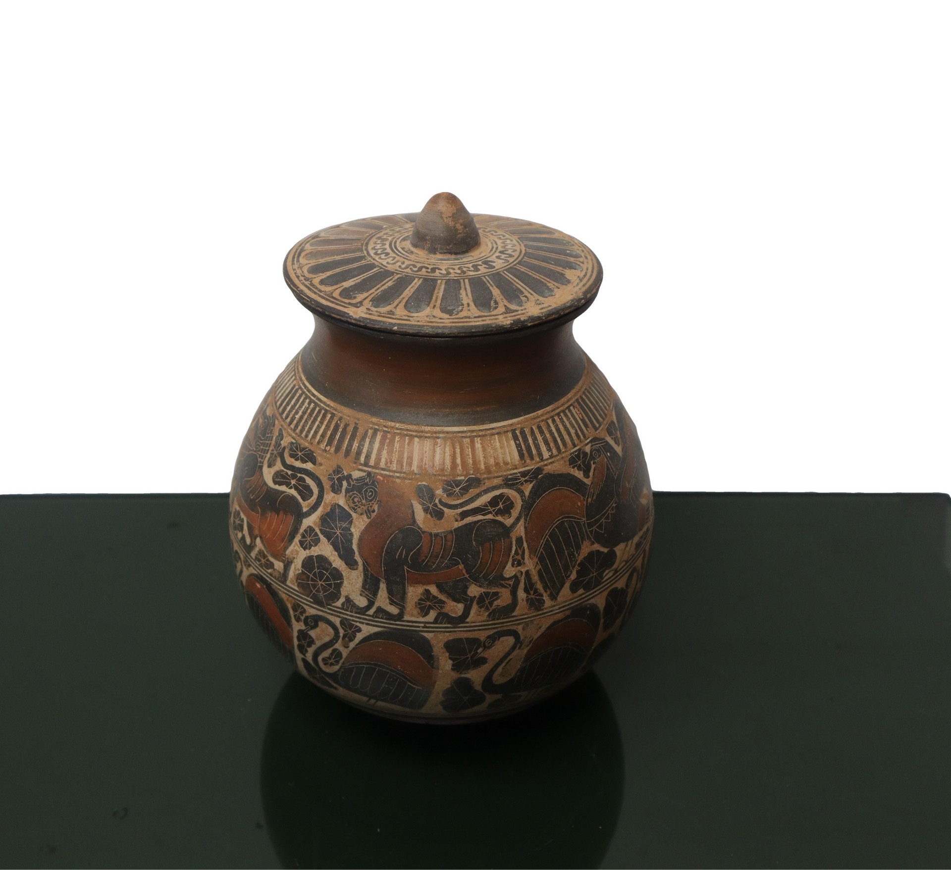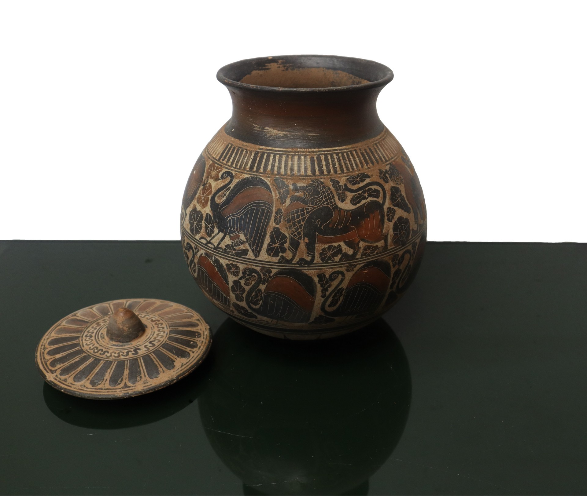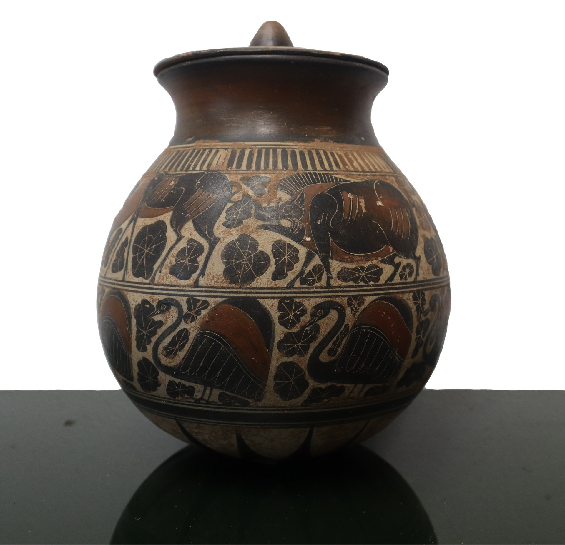 Riproduzione Krossos h cm 23 terracotta dipinta Riproduzione archeologica, Corpo ovoidale. Raffigurante scene mitologiche. Commerciabili giusto parere Soprintendenza per i beni culturali ed ambientali di Catania del 13/12/22 N° protocollo 19871