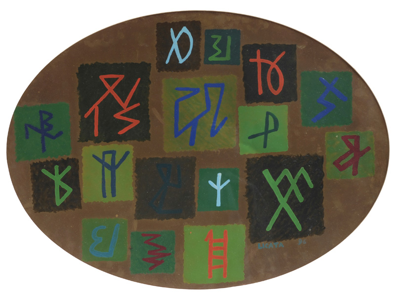 Riccardo Licata (Torino, 1929) ALFABETO, 1996 Acrilici e smalti su rame, cm. 50x70 Firma e data in basso a destra.