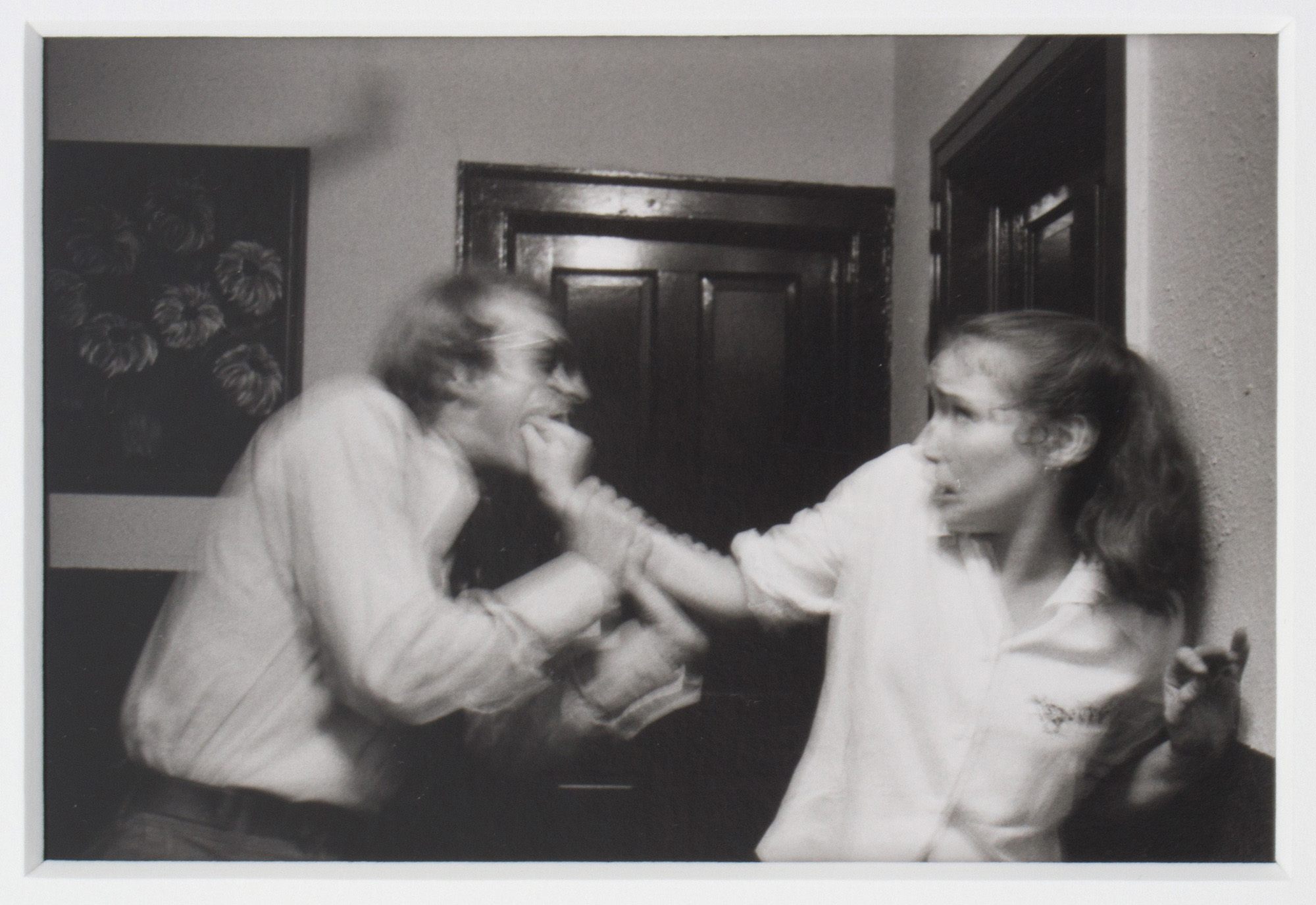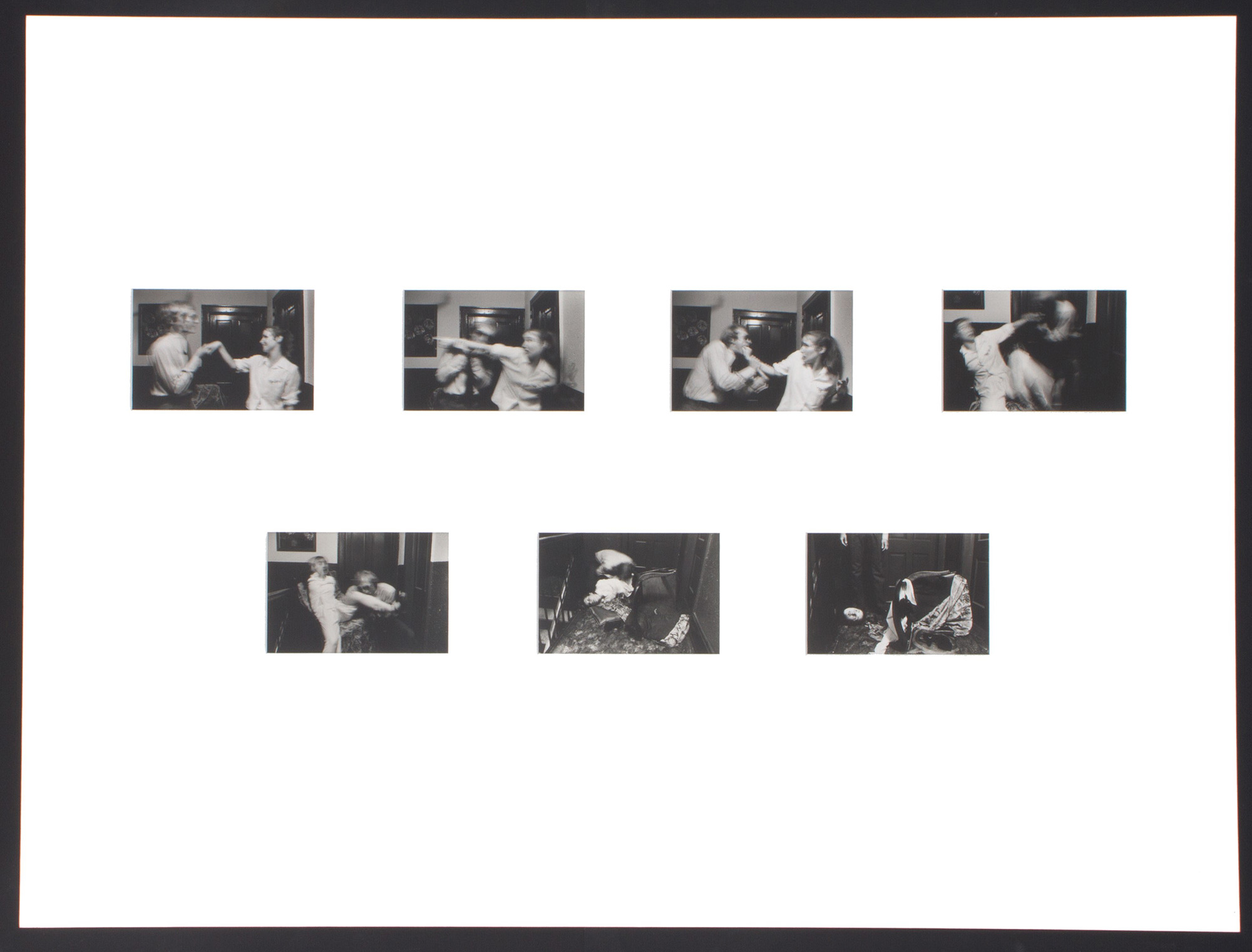 DUANE MICHALS (Pennsylvania, 1932). Serie di sette fotografie, stampa alla gelatina ai sali d'argento "PEOPLE EAT PEOPLE, 1973". Timbro della numerazione che indica la sequenza in centro a destra su ogni fotografia. Firma, titolo, data e tiratura 1/25 in basso a penna sulla prima fotografia. 8x12,5 cm su carta 12,5x18 cm. MICHALS DUANE (Pennsylvania, 1932). Series of seven photographs, gelatin silver print "PEOPLE EAT PEOPLE, 1973". Numbering stamp indicating the sequence in the center right of each photograph. Signature, title, date and edition 1/25 lower in pen on the first photograph. 8x12.5cm on paper 12.5x18cm.