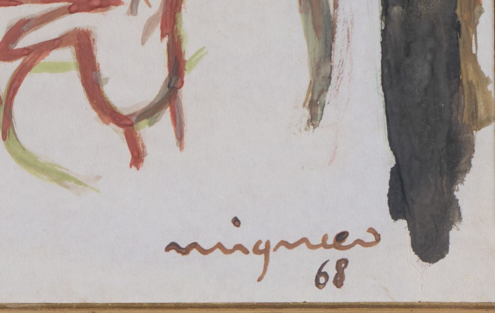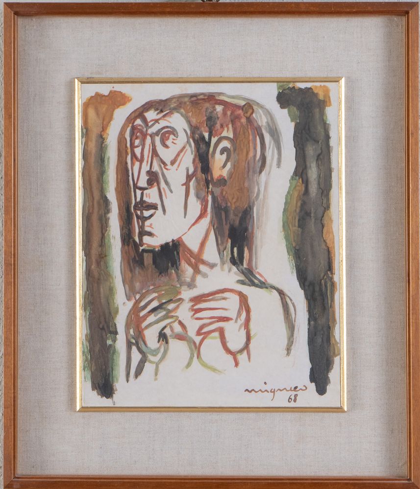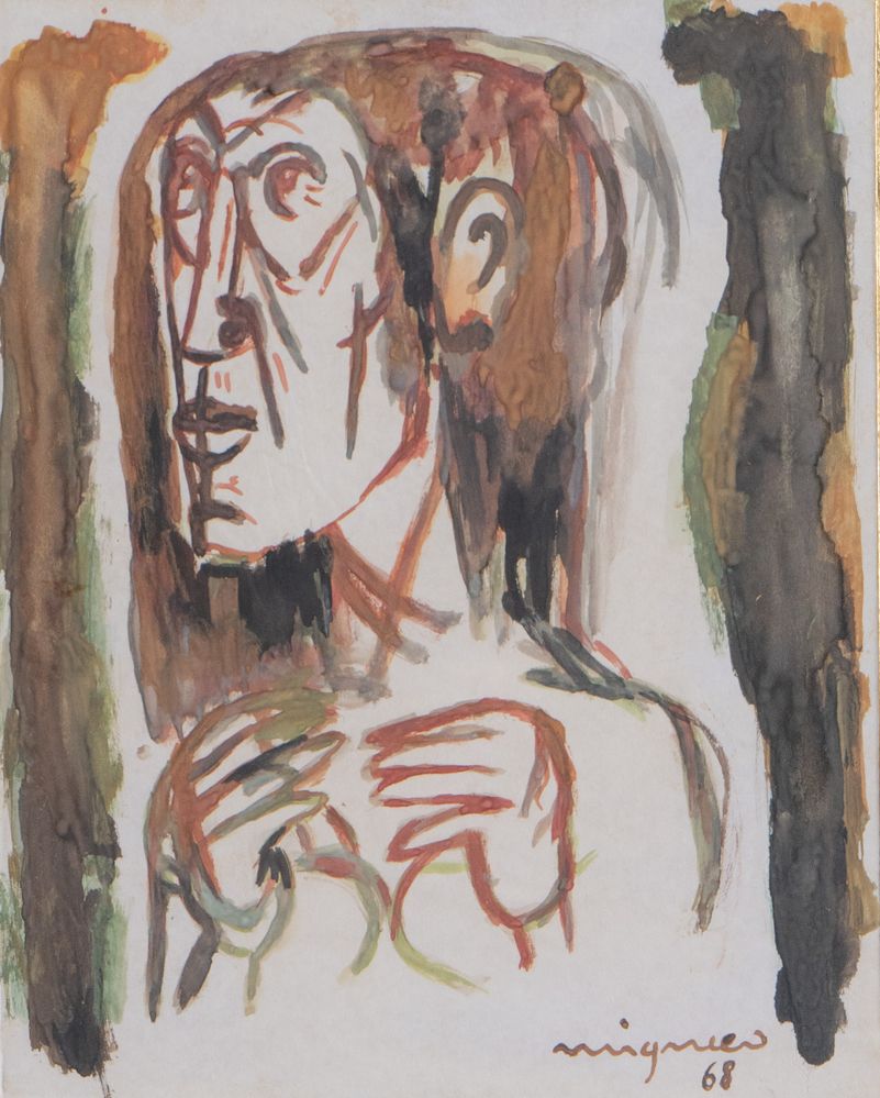 GIUSEPPE MIGNECO (Messina 1903 - Milano 1997) "Figura", 1968. Tecnica mista su carta. Cm 28x22. Opera firmata e datata in basso a destra Migneco '68.