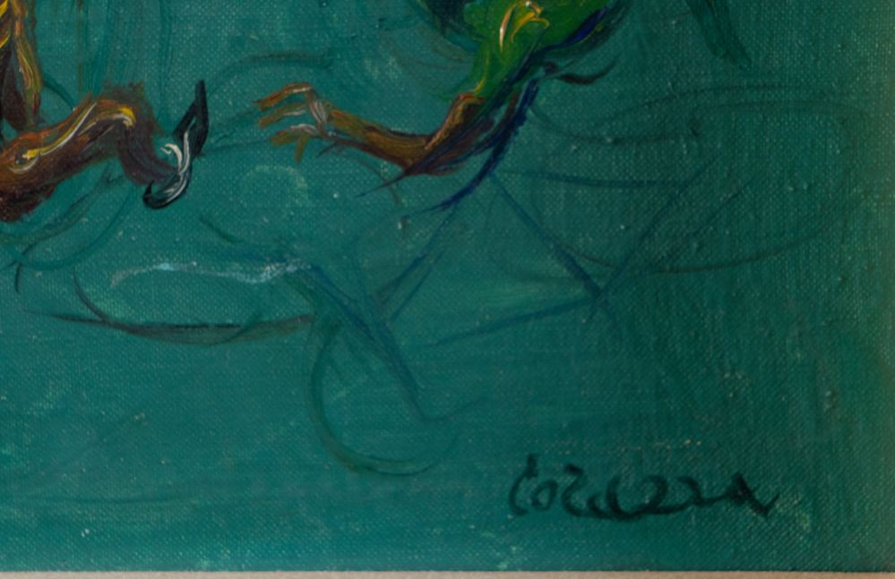 NINO CORRADO CORAZZA (Bologna 1897 - 1975) "Ciclisti". Olio su tela. Cm...