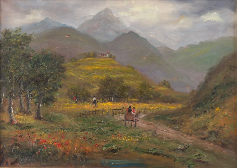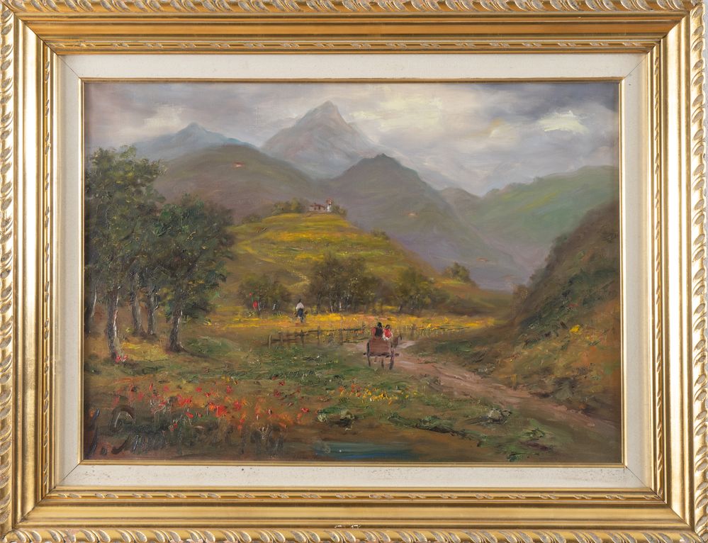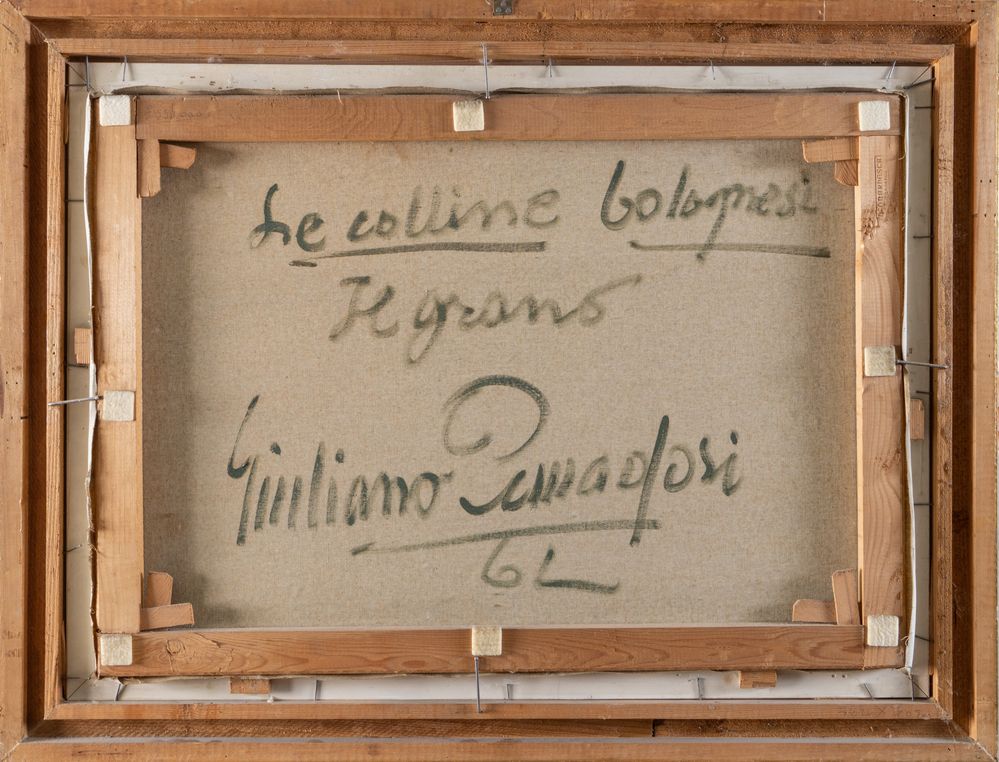 GIULIANO AMADORI (Bologna 1883 - 1972) "Le colline bolognesi. Il grano". Olio su tela. Cm 50x70. Opera firmata e datata in basso a sinistra G. Amadori 1961. Al retro opera intitolata, firmata e datata Le colline bolognese - il grano, Giuliano Amadori, '61.