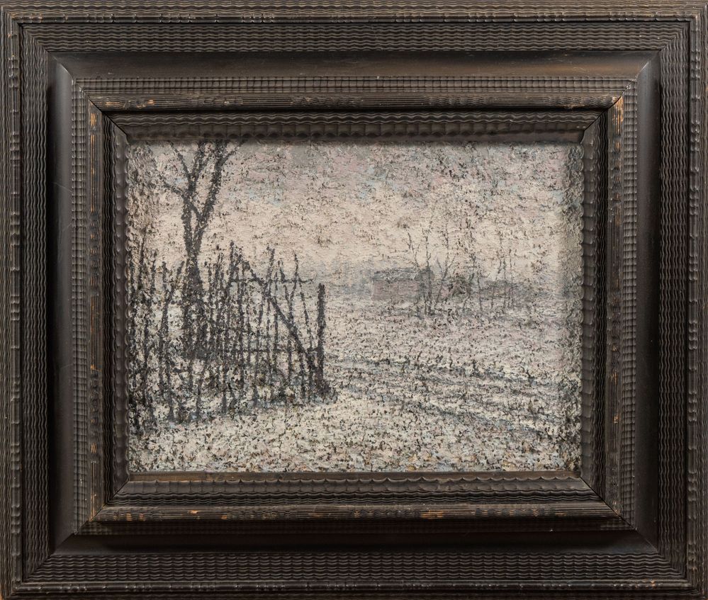 Pittore anonimo del XX secolo. "Nevicata". Olio su tela. Cm 50,5x70.