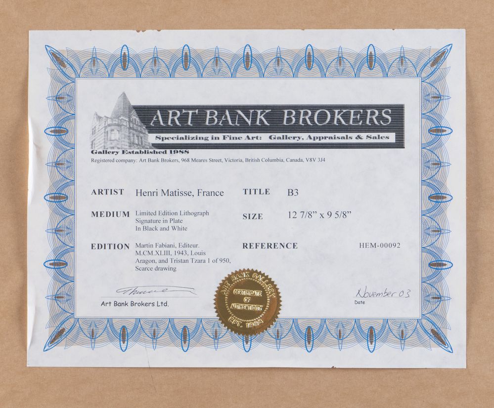 Lot 34 | HENRI MATISSE (Le Cateau-Cambrésis 1869 - Nizza 1954) "L5". Litografia su...