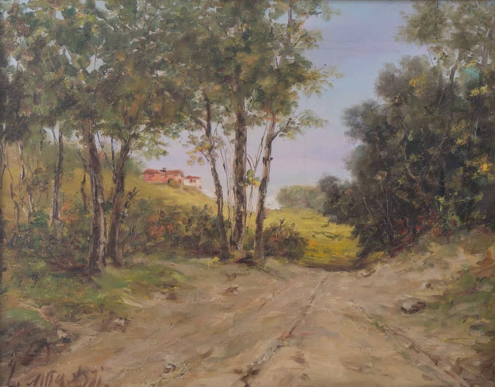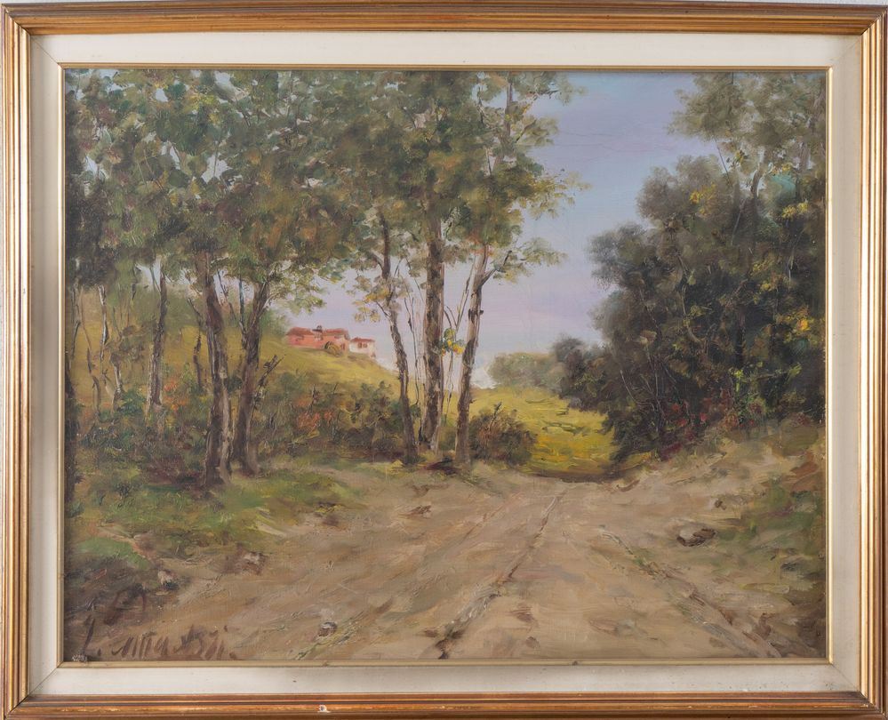 GIULIANO AMADORI (Bologna 1883 - 1972) "La collina". Olio su tela. Cm 55x70....