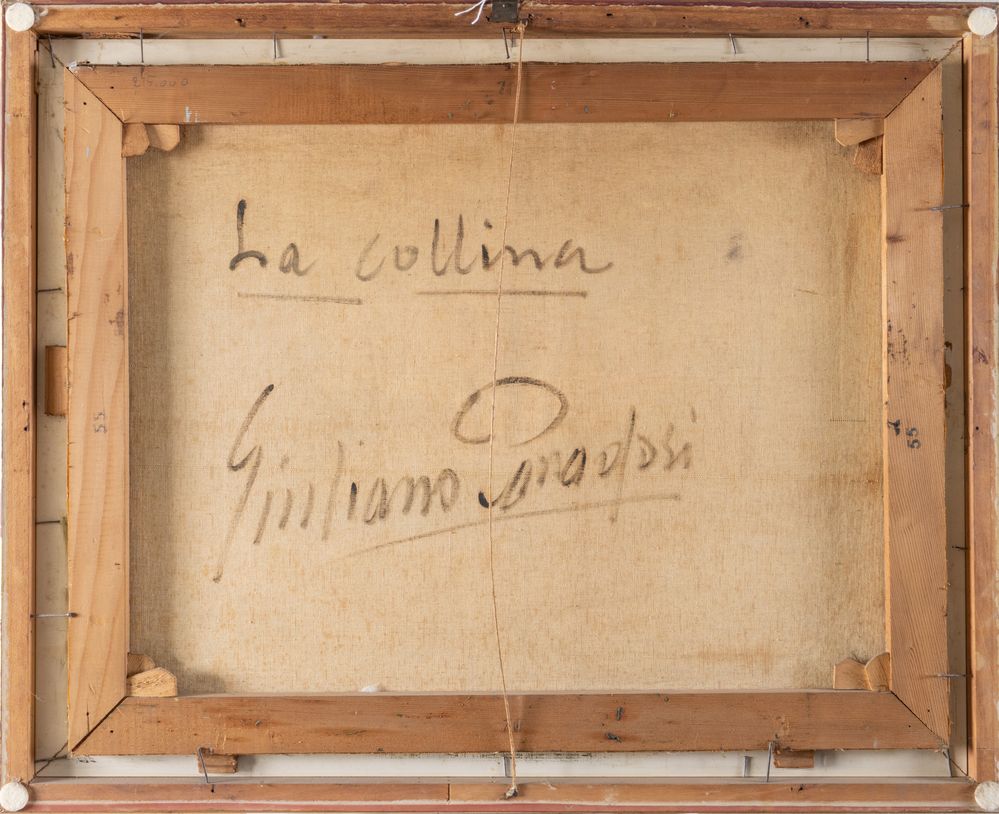 GIULIANO AMADORI (Bologna 1883 - 1972) "La collina". Olio su tela. Cm 55x70. Opera firmata e datata in basso a sinistra G. Amadori. Al retro opera intitolata e firmata La collina, Giuliano Amadori.