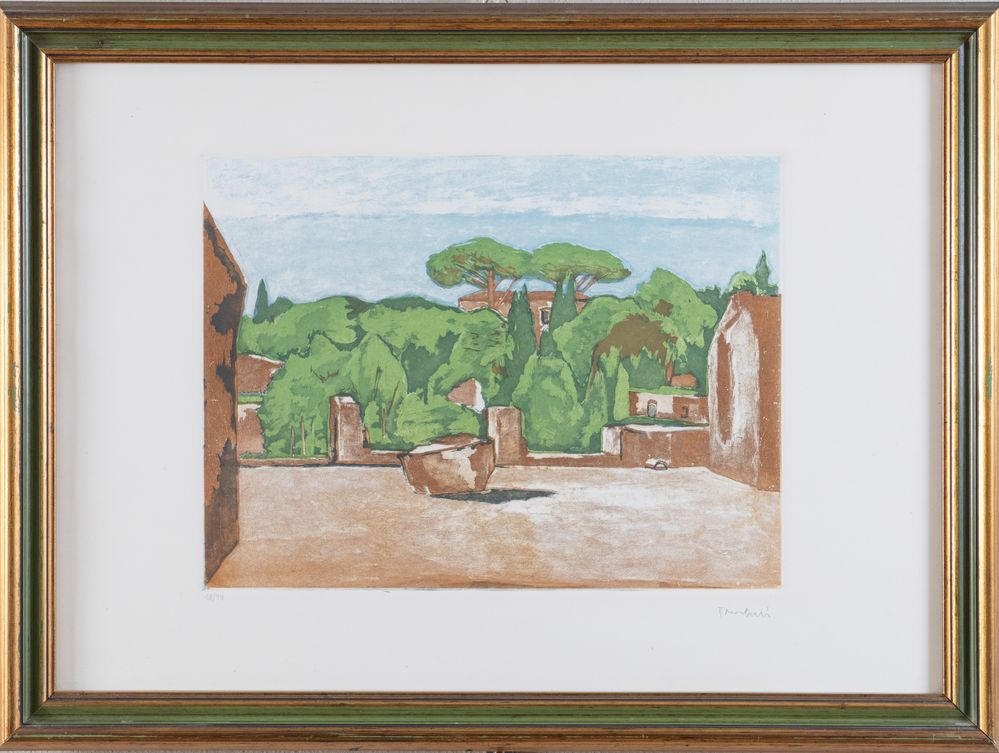 ORFEO TAMBURI (Jesi 1910 - Ermont 1994) "Paesaggio". Litografia a colori su...