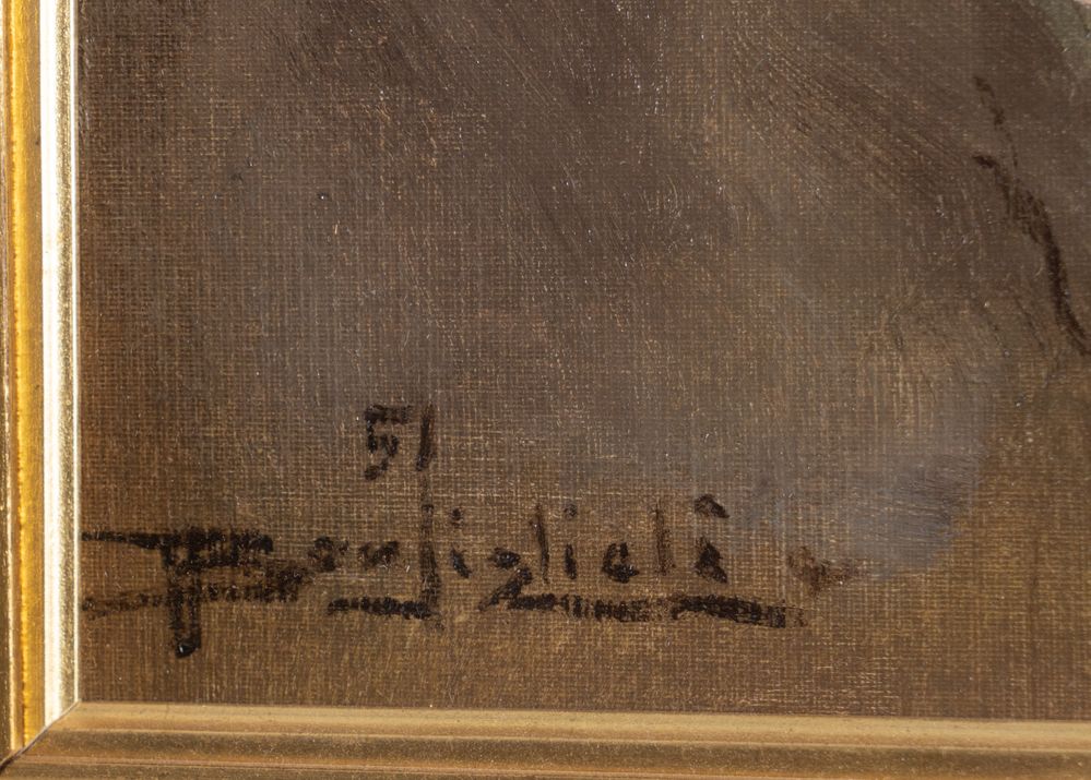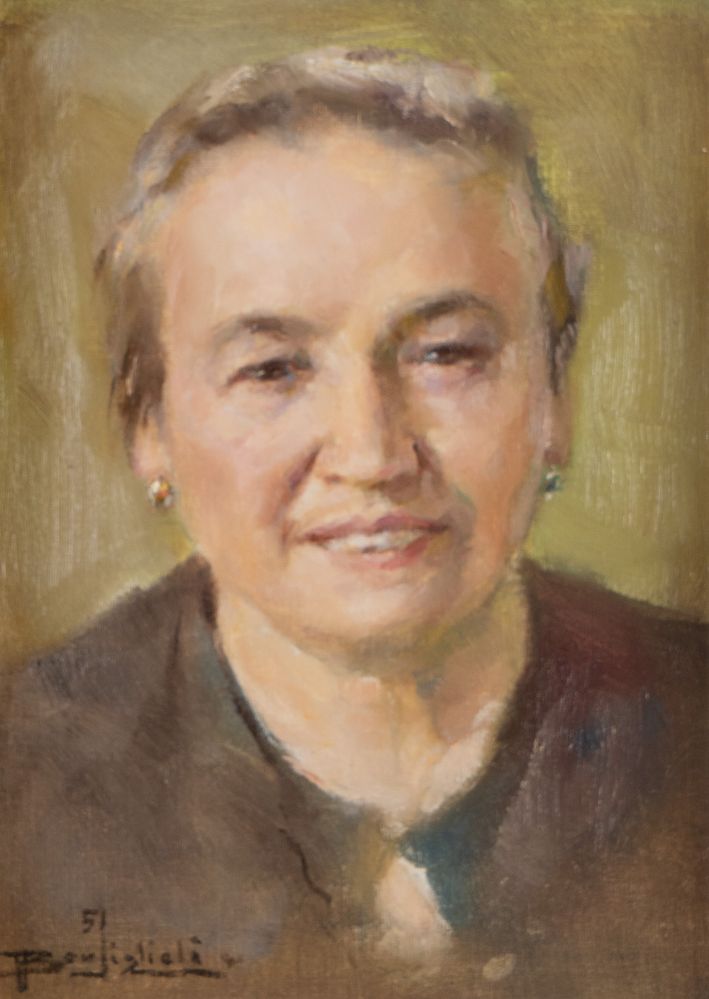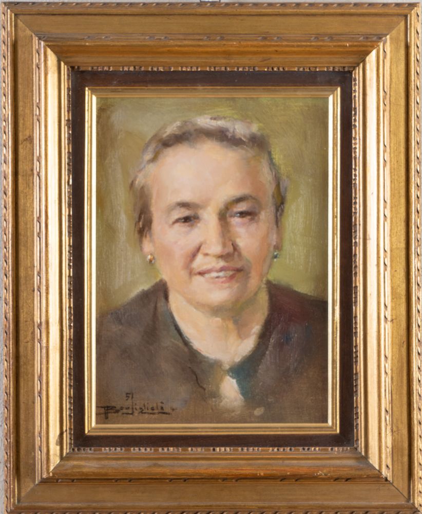 UMBERTO BONFIGLIOLI (Bologna 1892 - 1974) "Ritratto", 1951. Olio su cartone telato. Cm 32,5x23. Opera firmata e datata in basso a sinistra A. Bonfiglioli '51.