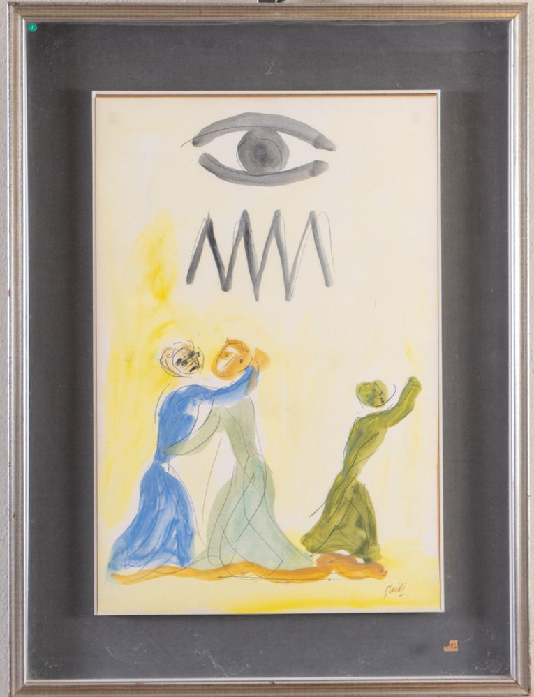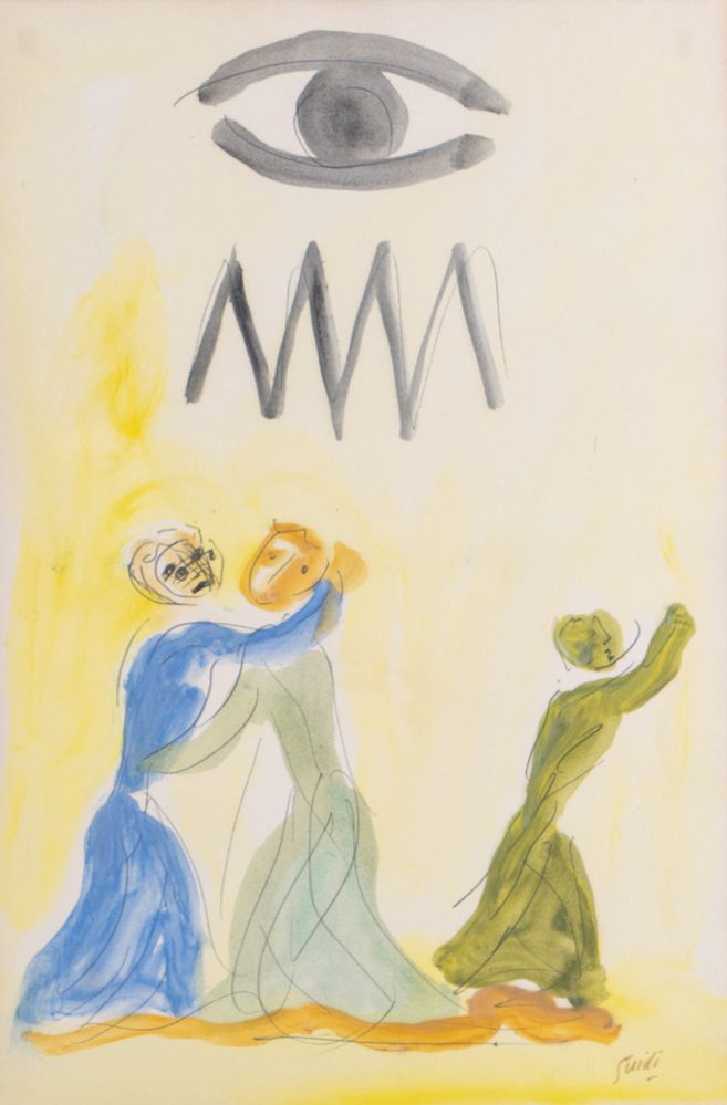 VIRGILIO GUIDI (Roma 1891 - Venezia 1984) "Incontro". Acquerello su carta. Cm...