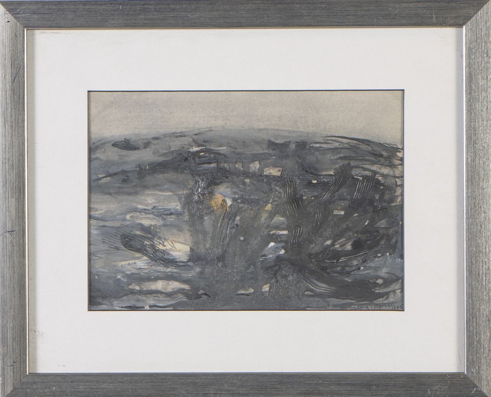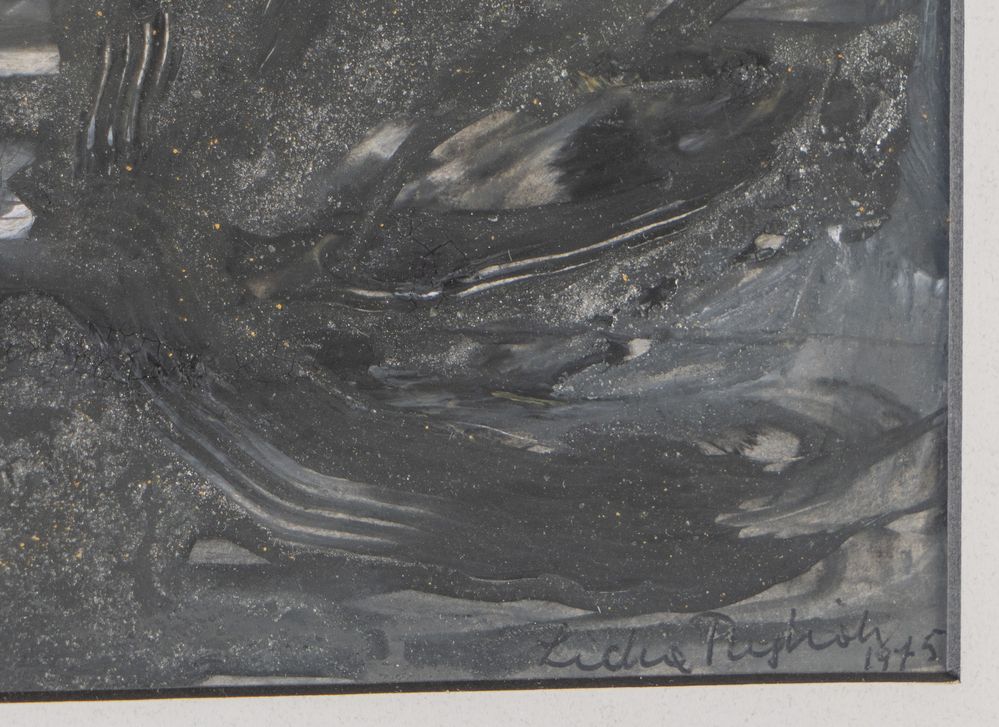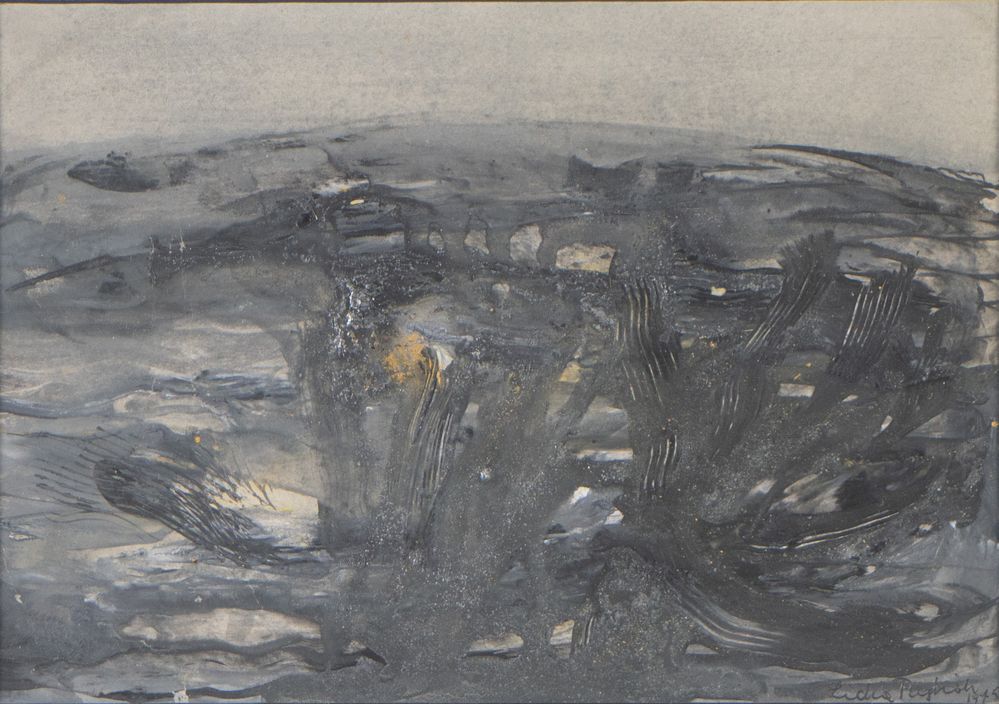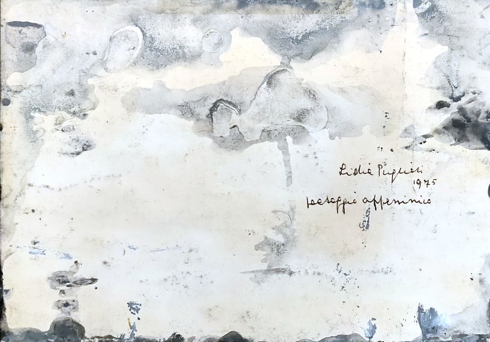 LIDIA PUGLIOLI (San Lazzaro di Savena 1919 - Bologna 2013) "Paesaggio appeninico", 1975. Tecnica mista su carta. Cm 17,5x25. Opera firmata e datata in basso a destra Lidia Puglioli 1975. Al retro opera firmata, datata e intitolata Lidia Puglioli, 1975, Paesaggio appenninico.