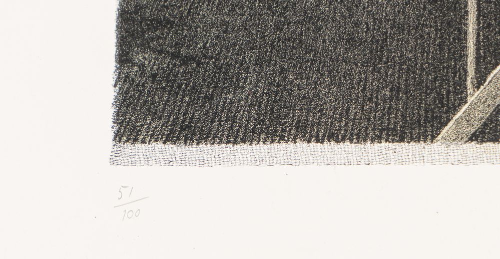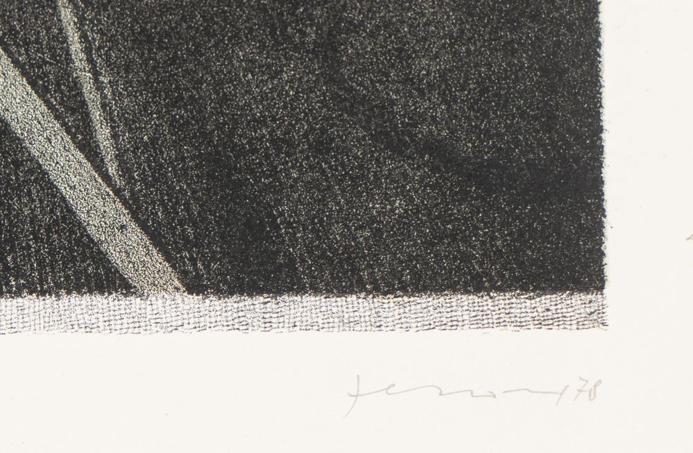GIANFRANCO FERRONI (Livorno 1927 - Bergamo 2001) "Senza titolo", 1978. Litografia su carta. Lastra: cm 38x28,2. Foglio: 70x50. Opera firmata e datata in basso a destra Ferroni '78. Reca numeri di tiratura in basso a sinistra 51/100. Opera accompagnata da certificato di garanzia, con firma, di ADAC Grafica, edizioni d'arte moderna, Modena.