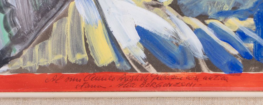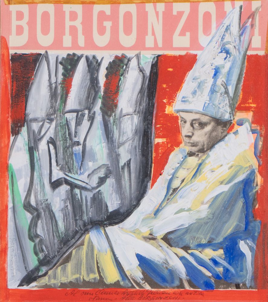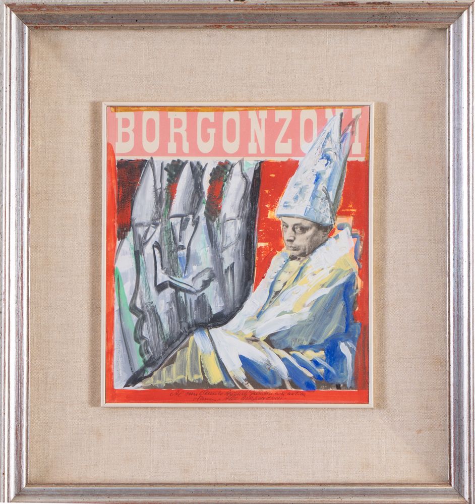 ALDO BORGONZONI (Medicina 1913 - Bologna 2004) "Cardinale", 1965. Tecnica mista su carta. Cm 23x20. Opera firmata e datata in basso a sinistra Borgonzoni 1965.