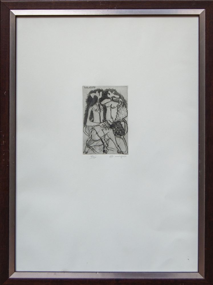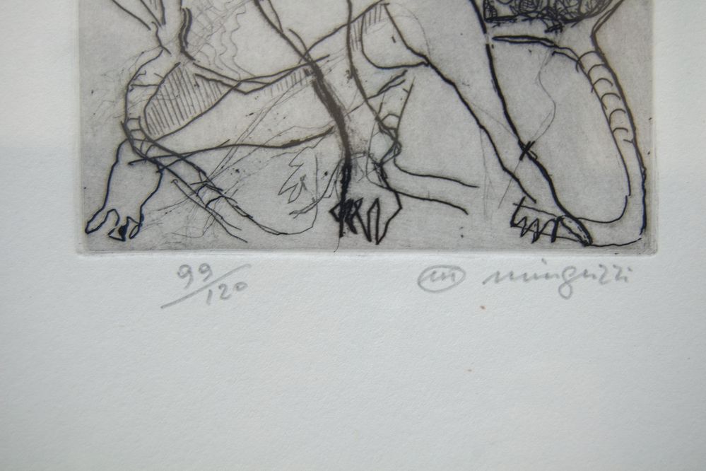 LUCIANO MINGUZZI (Bologna 1911 - Milano 2004) "Senza titolo", 1977. Litografia su carta. Lastra: cm 17,5x11,5. Foglio: cm 70x50. Opera firmata in basso a destra Minguzzi. Reca numeri di tiratura in basso a sinistra 99/120. Datata in lastra 11-1977.