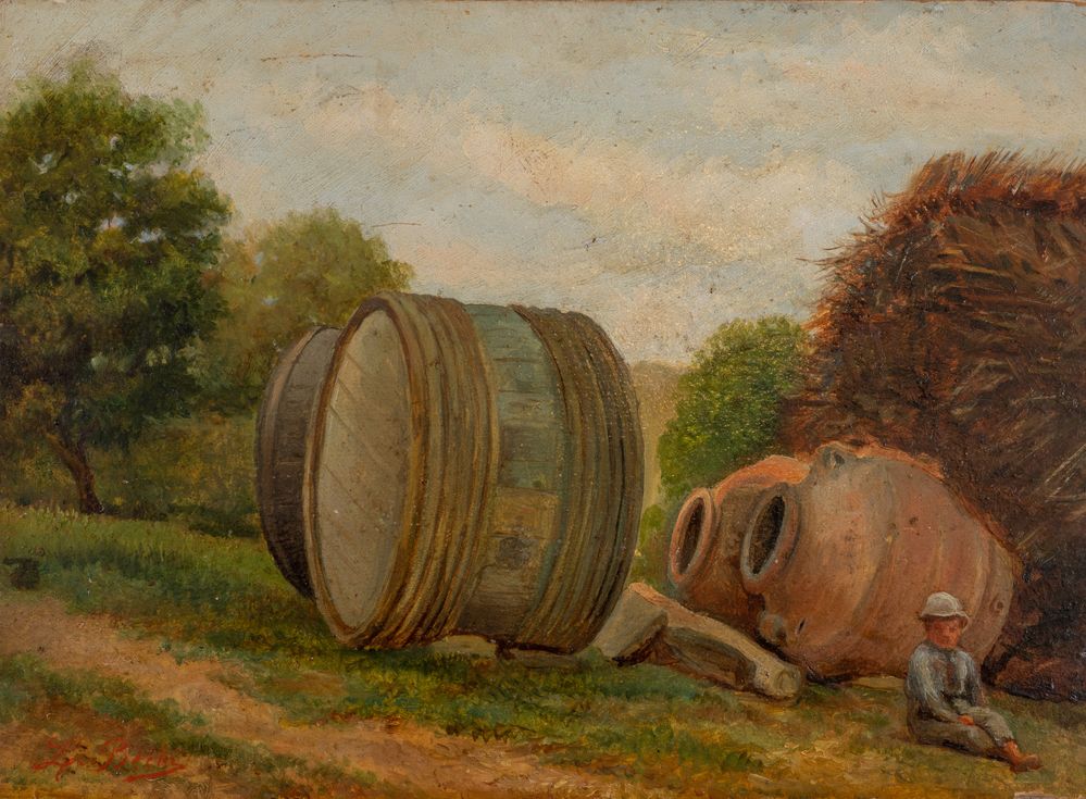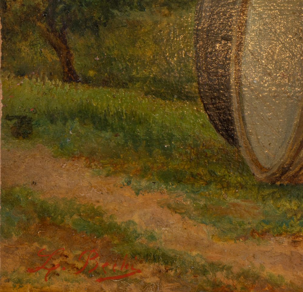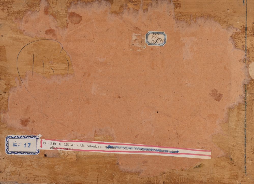 Lot 165 | LUIGI BECHI (Firenze 1830 - 1919) "Aia colonica". Olio su tavola. Cm 21x28,5....