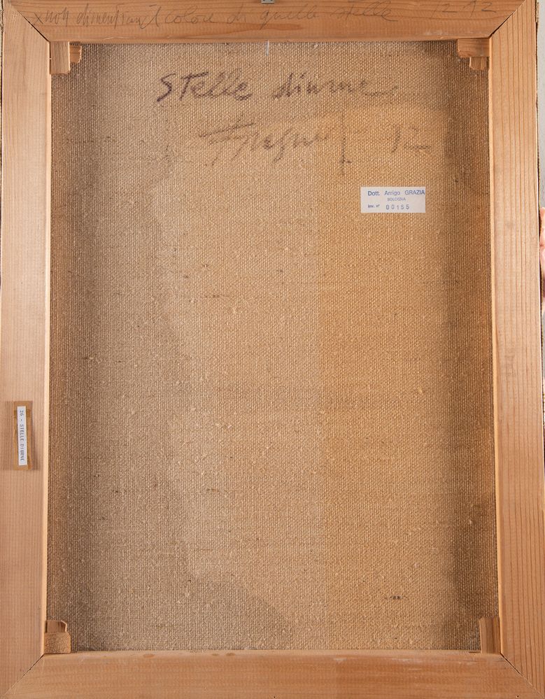 ALFONSO FRASNEDI (Bologna 1934) "Stelle diurne", 1992. Olio su tela. Cm 65x50. Opera firmata in basso al centro Frasnedi. Al retro opera firmata, datata e intitolata Frasnedi, '92, Stelle diurne.