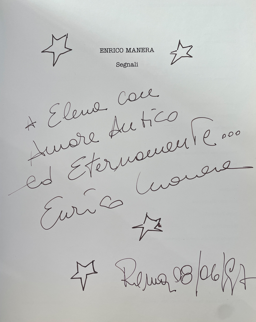 Reca all'interno un disegno a biro firmato, datato (Roma, 08/06/1997) e dedicato