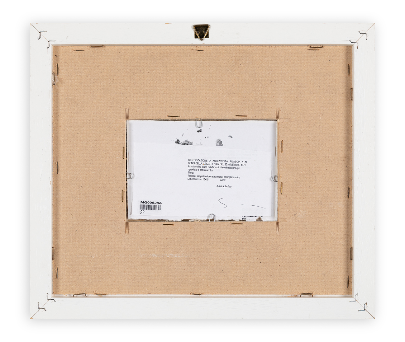 Certificato di autenticità a cura dell'Archivio Generale dell'Opera Pittorica di Mario Schifano - Fondazione Mario Schifano (RM) rilasciato in data 05/10/2007