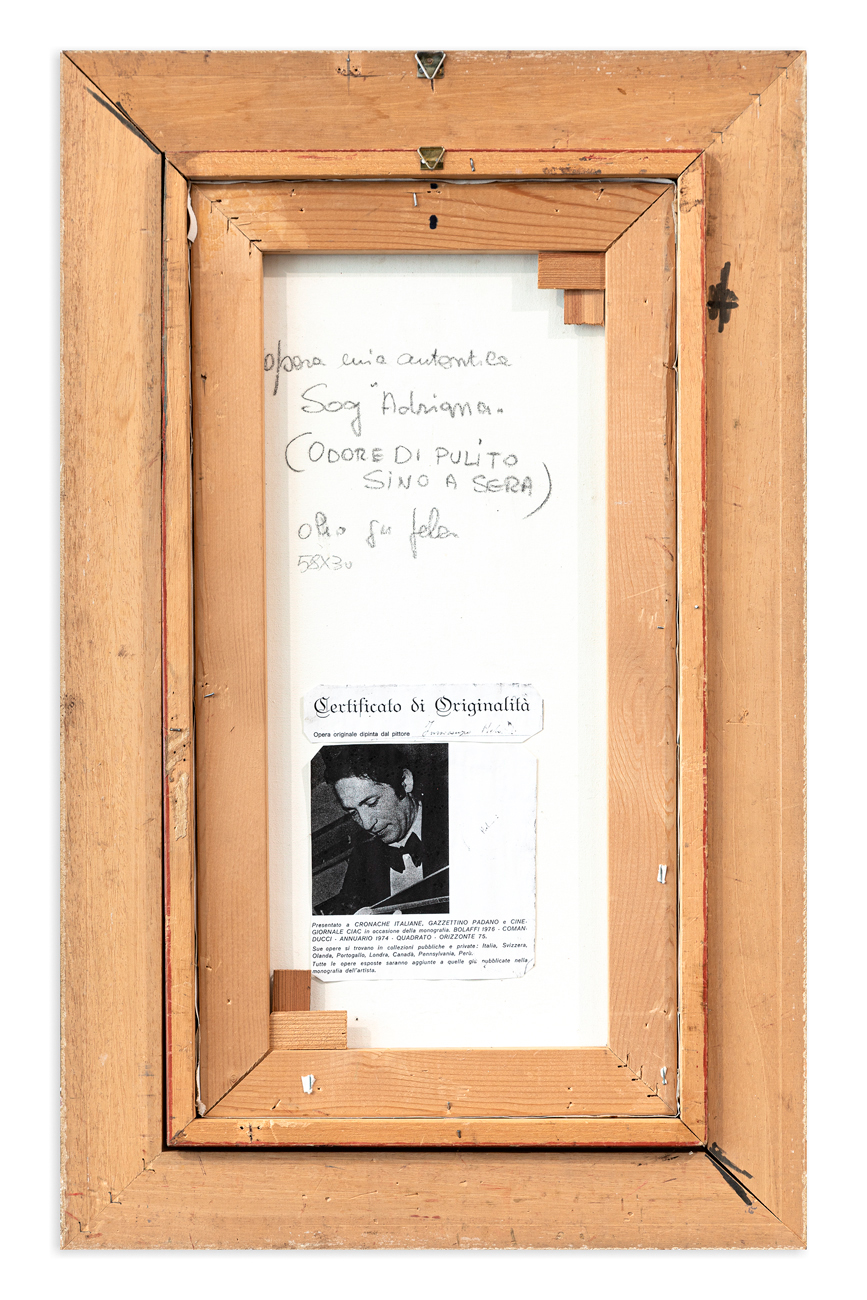 Titolo, tecnica e dichiarazione di autenticità dell'Artista al retro