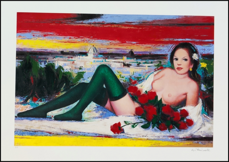FARINELLI EZIO Rieti 1937 “Fiori e cupole” serigrafia su cartoncino cm 70x50. Firmata sul fronte in basso a destra, esemplare P.A. a sinistra. Sul retro etichetta di garanzia a cura dell’Istituto Grafico Italia.