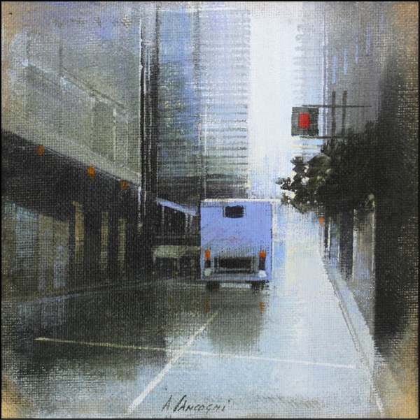 CANCOGNI AGOSTINO Forte dei Marmi 1950 “Città” olio su tela cm 30x30. Firmato sul fronte in basso al centro.