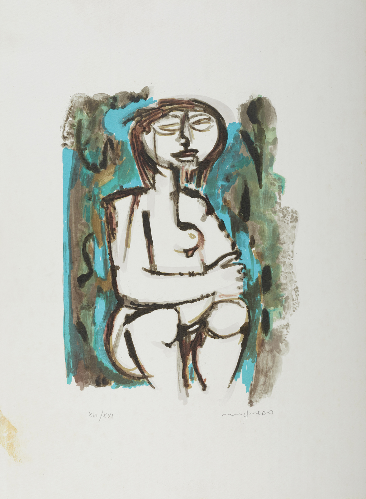 MIGNECO GIUSEPPE (1908 - 1997) Senza titolo. Litografia. Cm 32,00 x 44,00. XIII/XVI. Tiratura e firma in basso a matita. Difetti.