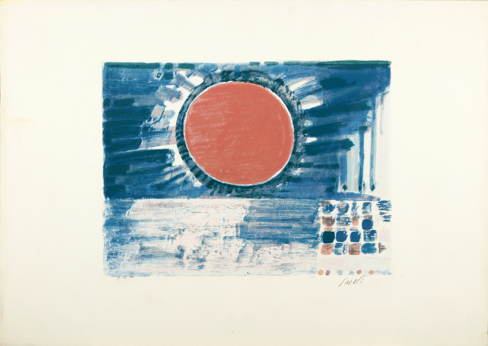 SAETTI BRUNO (1902 - 1984) Senza titolo. Serigrafia. Cm 71,00 x 51,00. P.d.a. Tiratura e firma a matita in basso. Timbro a secco Stamperia Flash Bologna in basso a destra.