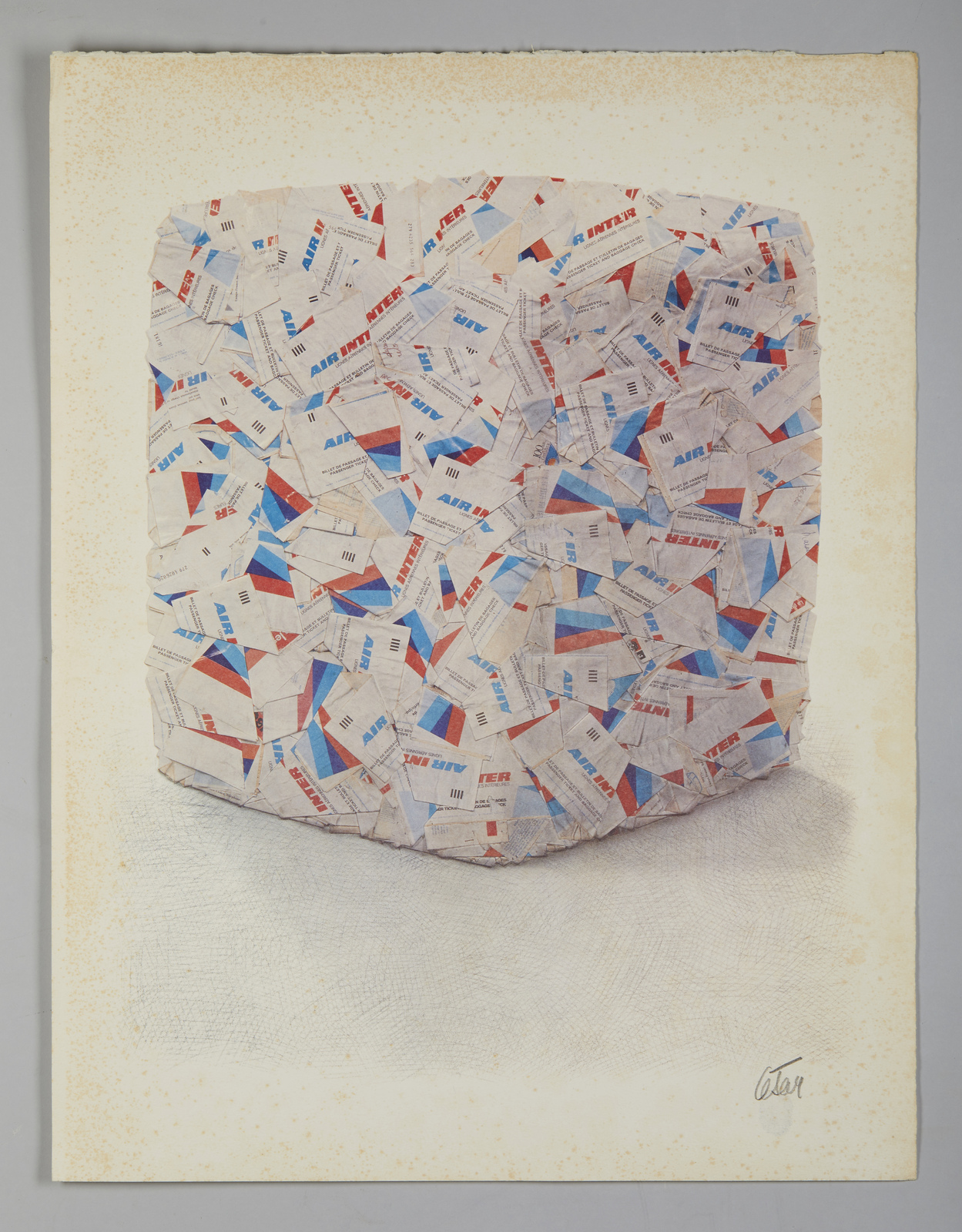 BALDACCINI CESAR (1921 - 1998) Compressione di biglietti aerei Air France. . Litografia. Cm 49,50 x 64,50. Firma a matita e impronta digitale in basso a destra