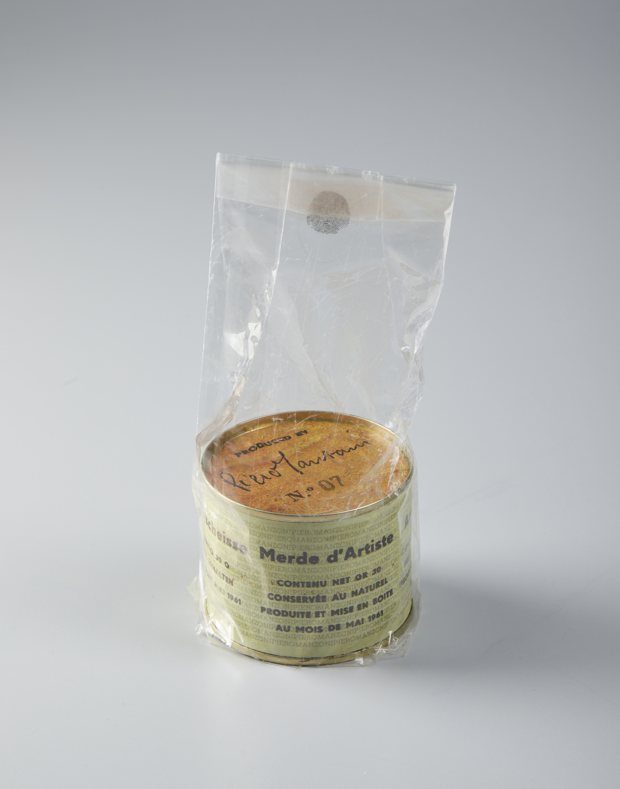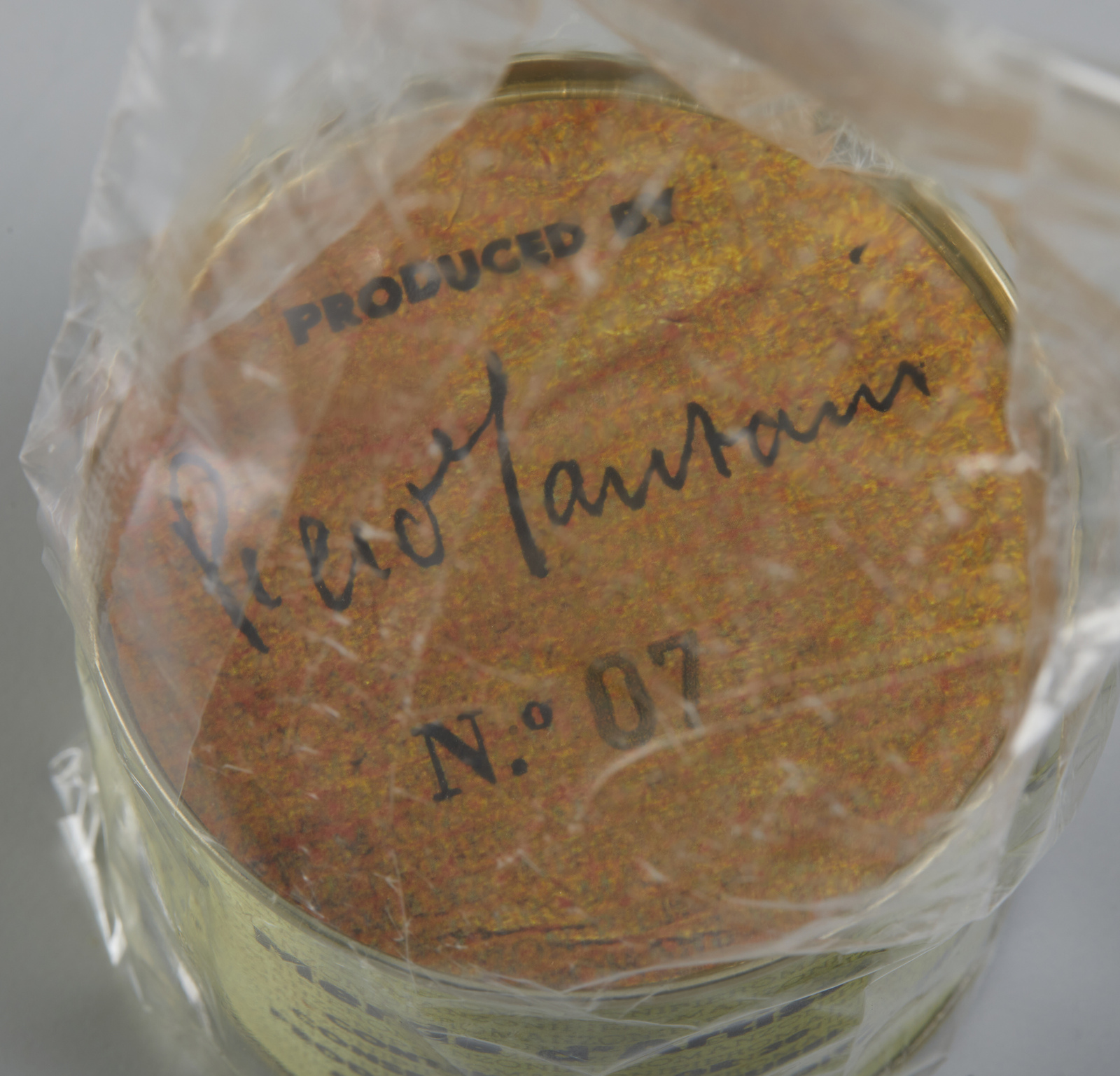 MANZONI PIERO (1933 - 1963) Merda d'artista. 2013. Scatola chiusa e sigillata. Cm 7,50 x 6,50. N°7. Firma a stampa. Merda d'Artista dell'anniversario, Maggio 2013. Prodotta ed inscatolata dalla Fondazione Piero Manzoni, Milano.