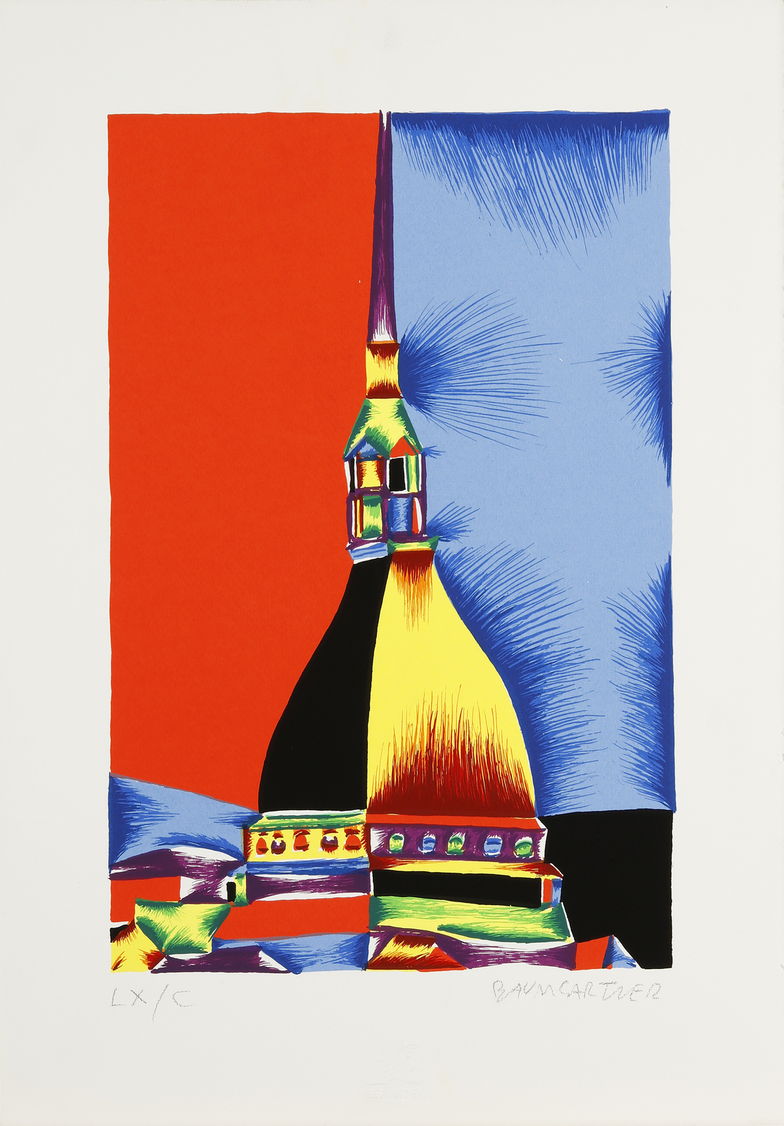 BAUMGARTNER FRITZ (n. 1929) La mole. Serigrafia. Cm 35,50 x 50,00. LX/C. Tiratura e firma in basso a matita. Timbro a secco Serivideo, Torino in basso al centro.