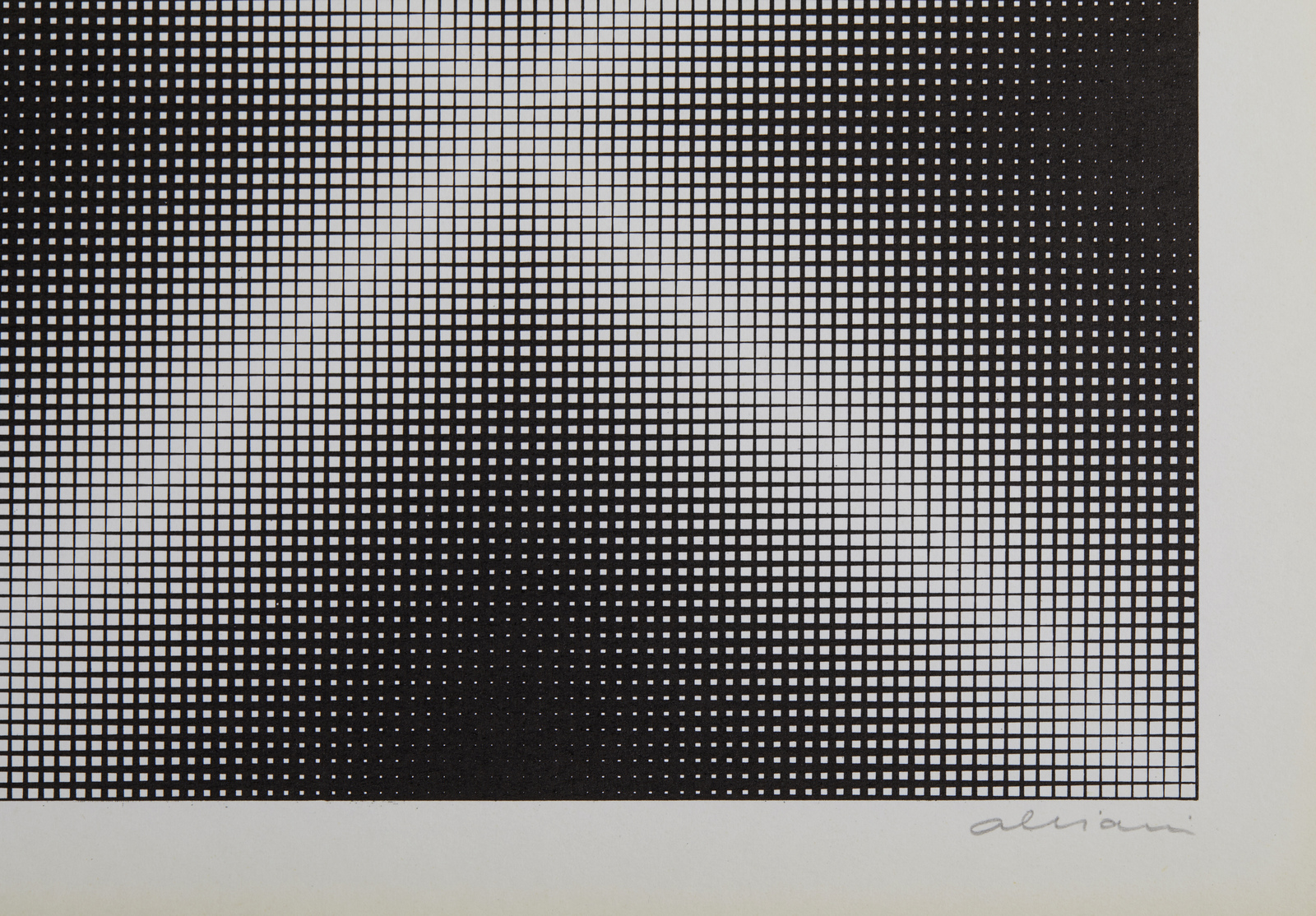 ALVIANI GETULIO (n. 1939) Testura grafica x ortogonale. Litografia offset. Cm 69,00 x 69,00. 280/500. Tiratura e firma in basso a matita.