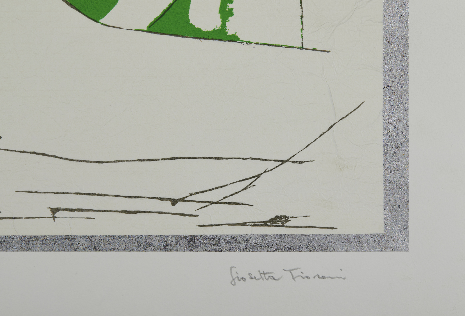 FIORONI GIOSETTA (n. 1932) Senza titolo. Serigrafia. Cm 50,00 x 50,00. 20/100. Tiratura e firma in basso a matita. Timrbo Goffredo Parise e Giosetta Fioroni in basso a sinistra