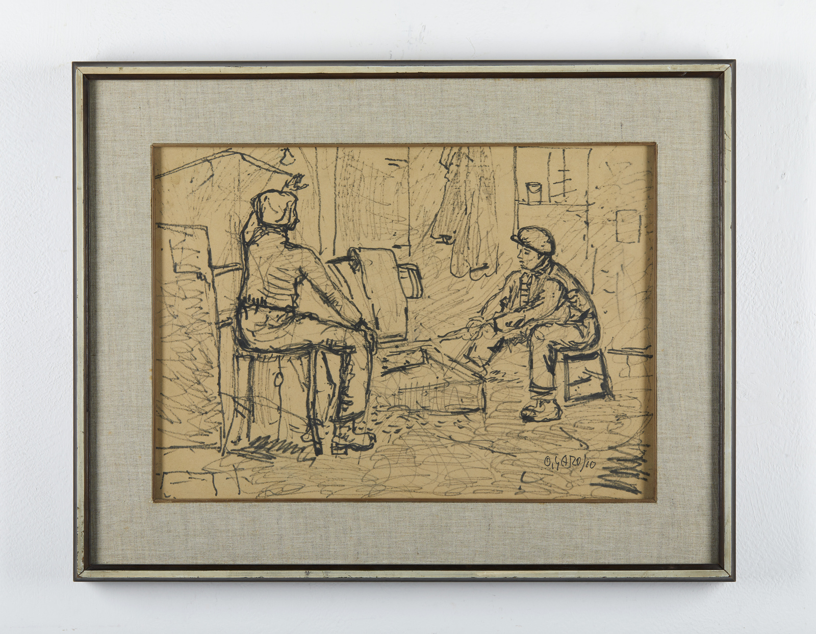 GAROSIO OTTORINO (1904 - 1980) Senza titolo. Tecnica mista su cartone pressato. Cm 50,50 x 36,00. Firma in basso a destra. Cornice presente