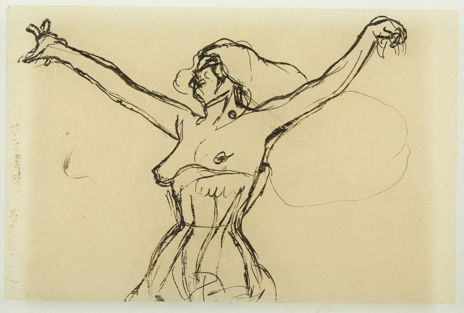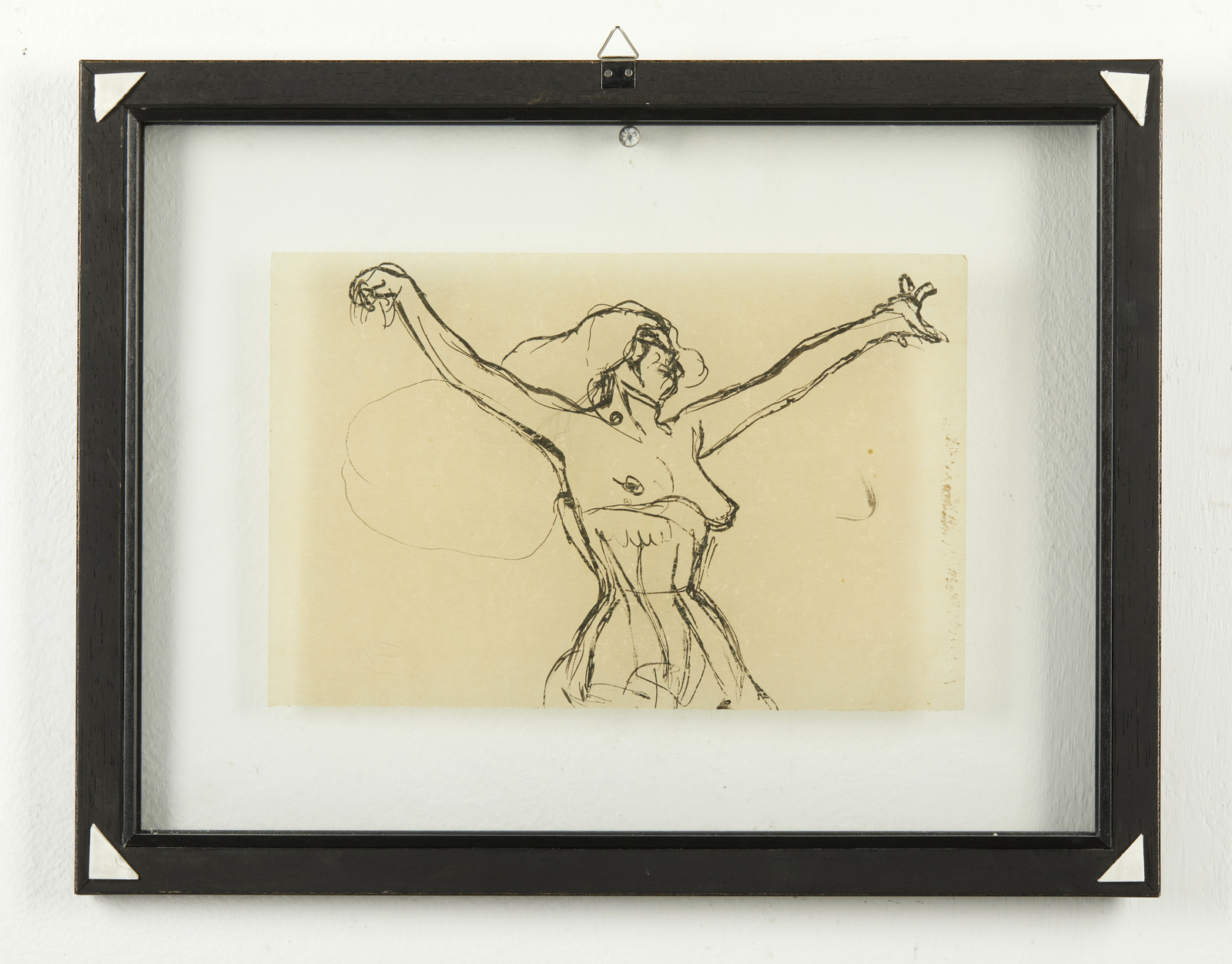 BUCCI ANSELMO (1887 - 1955) Danzatrice. 1908. China su carta da lucido. Cm 25,00 x 16,50. Firma in basso a destra a matita. L'opera è archiviata presso Archivio Anselmo Bucci, Galleria Antologia, Monza. Certificato d'autenticità rilasciato da Matteo Mapelli. Lievi difetti. Cornice presente